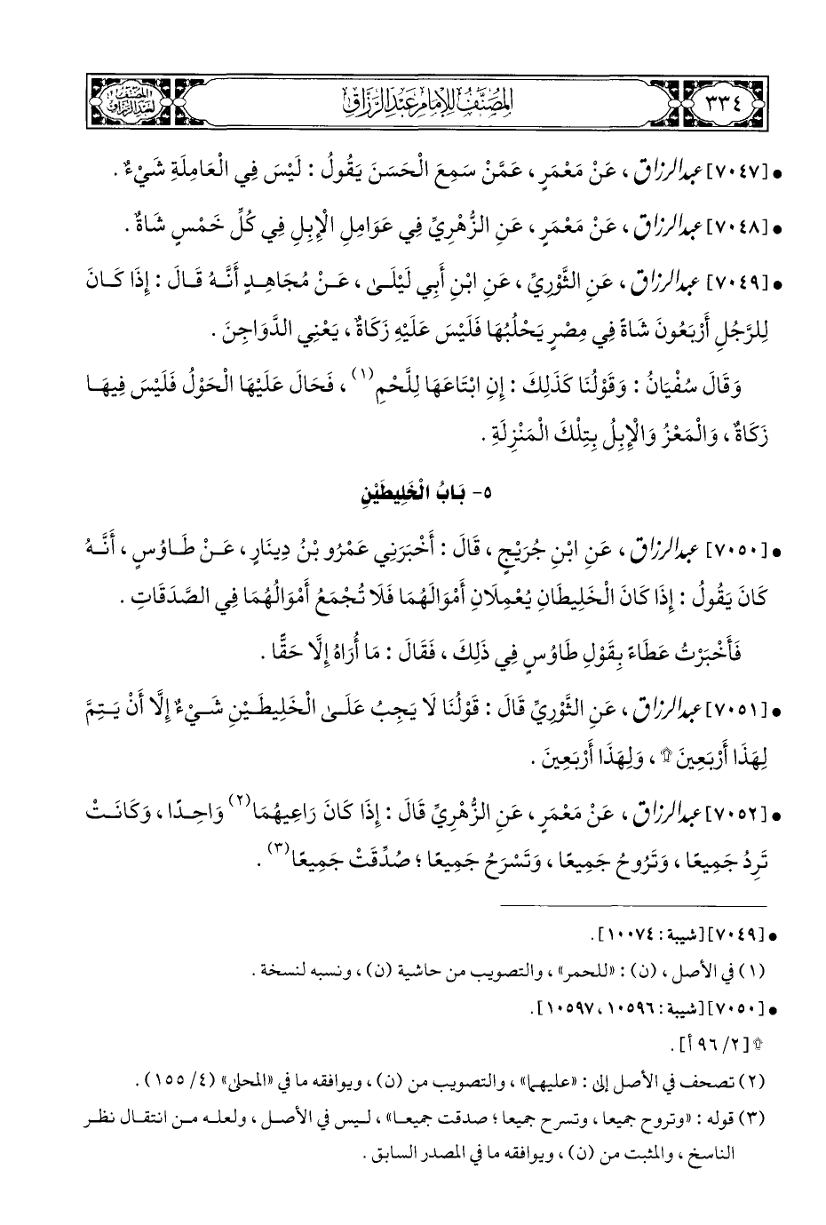 • [٧٠٥٢] عبد الرزاق، عَنْ مَعْمَرٍ، عَنِ الزُّهْرِيِّ قَالَ: إِذَا كَانَ رَاعِيهُمَا (¬٢) وَاحِدًا، وَكَانَتْ تَرِدُ جَمِيعًا، وَتَرُوحُ جَمِيعًا، وَتَسْرَحُ جَمِيعًا؛ صُدِّقَتْ جَمِيعًا (¬٣).