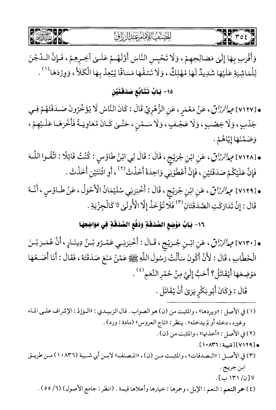 (¬٣) في الأصل: "الصدقات"، والمثبت من (ن)، "المصنف" لابن أبي شيبة (١٠٨٣٦) من طريق ابن جريج.
