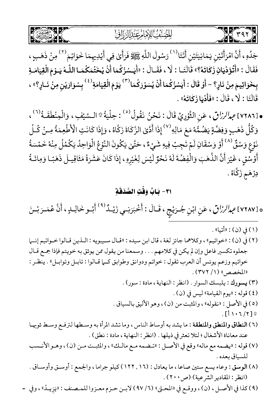 (¬٨) الوسق: وعاء يسع ستين صاعا، ما يعادل: (١٢٢.١٦) كيلو جراما، والجمع: أوسق وأوساق.