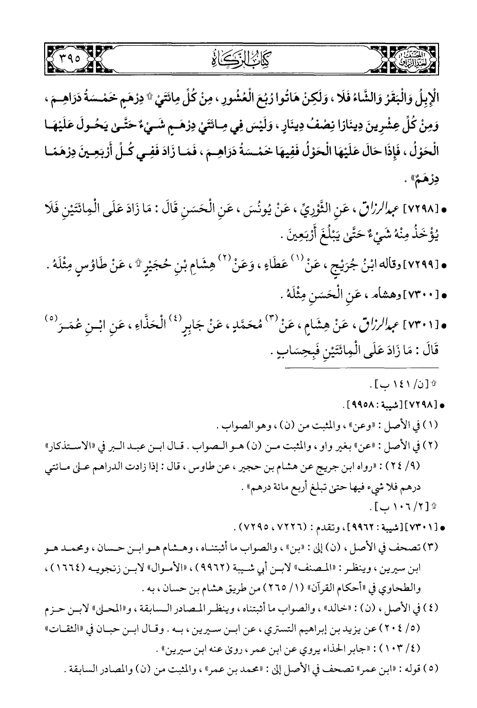 • [٧٣٠١] عبد الرزاق، عَنْ هِشَامٍ، عَنْ (¬٣) مُحَمَّدٍ، عَنْ جَابِرٍ (¬٤) الْحَذَّاءِ، عَنِ ابْنِ عُمَرَ (¬٥) قَالَ: مَا زَادَ عَلَى الْمِائَتَيْنِ فَبِحِسَابٍ.