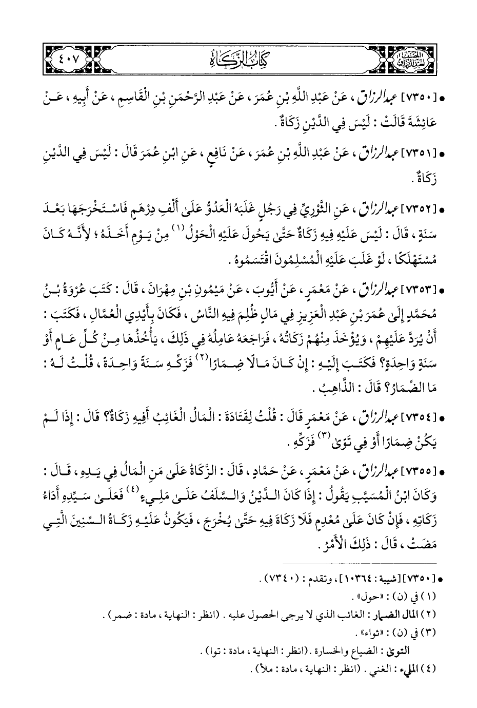 (¬٢) المال الضمار: الغائب الذي لا يرجى الحصول عليه. (انظر: النهاية، مادة: ضمر).