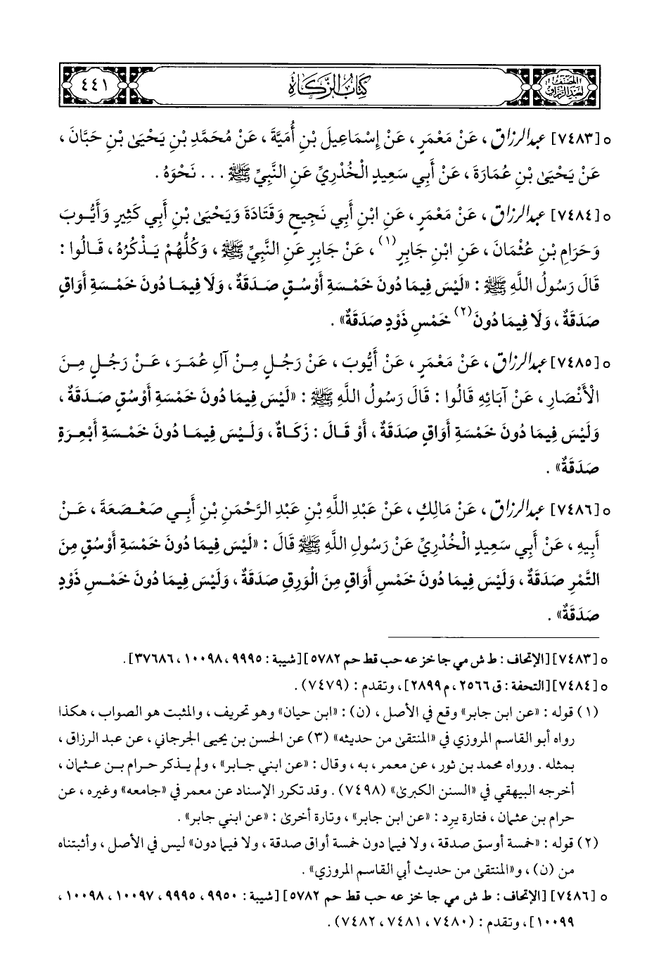 ° [٧٤٨٣] [الإتحاف: ط ش مي جا خز عنه حب قط حم ٥٧٨٢] [شيبة: ٩٩٩٥، ١٠٠٩٨، ٣٧٦٨٦].