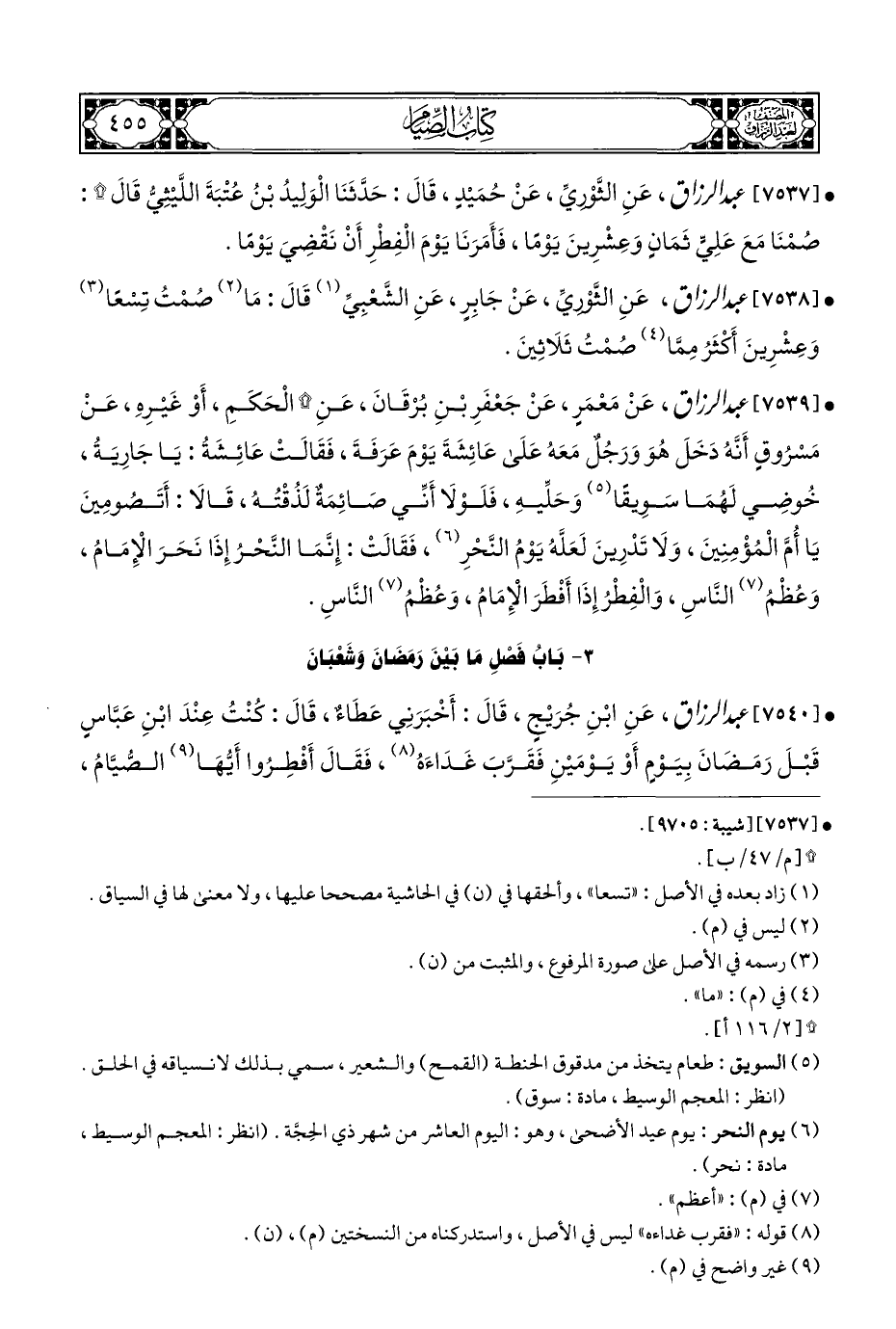 • [٧٥٤٠] عبد الرزاق، عَنِ ابْنِ جُرَيْجٍ، قَالَ: أَخْبَرَنِي عَطَاءٌ، قَالَ: كُنْتُ عِنْدَ ابْنِ عَبَّاسٍ قَبْلَ رَمَضَانَ بِيَوْمٍ أَوْ يَوْمَيْنِ فَقَرَّبَ غَدَاءَهُ (¬٨)، فَقَالَ أَفْطِرُوا أَيُّهَا (¬٩) الصُّيَّامُ،