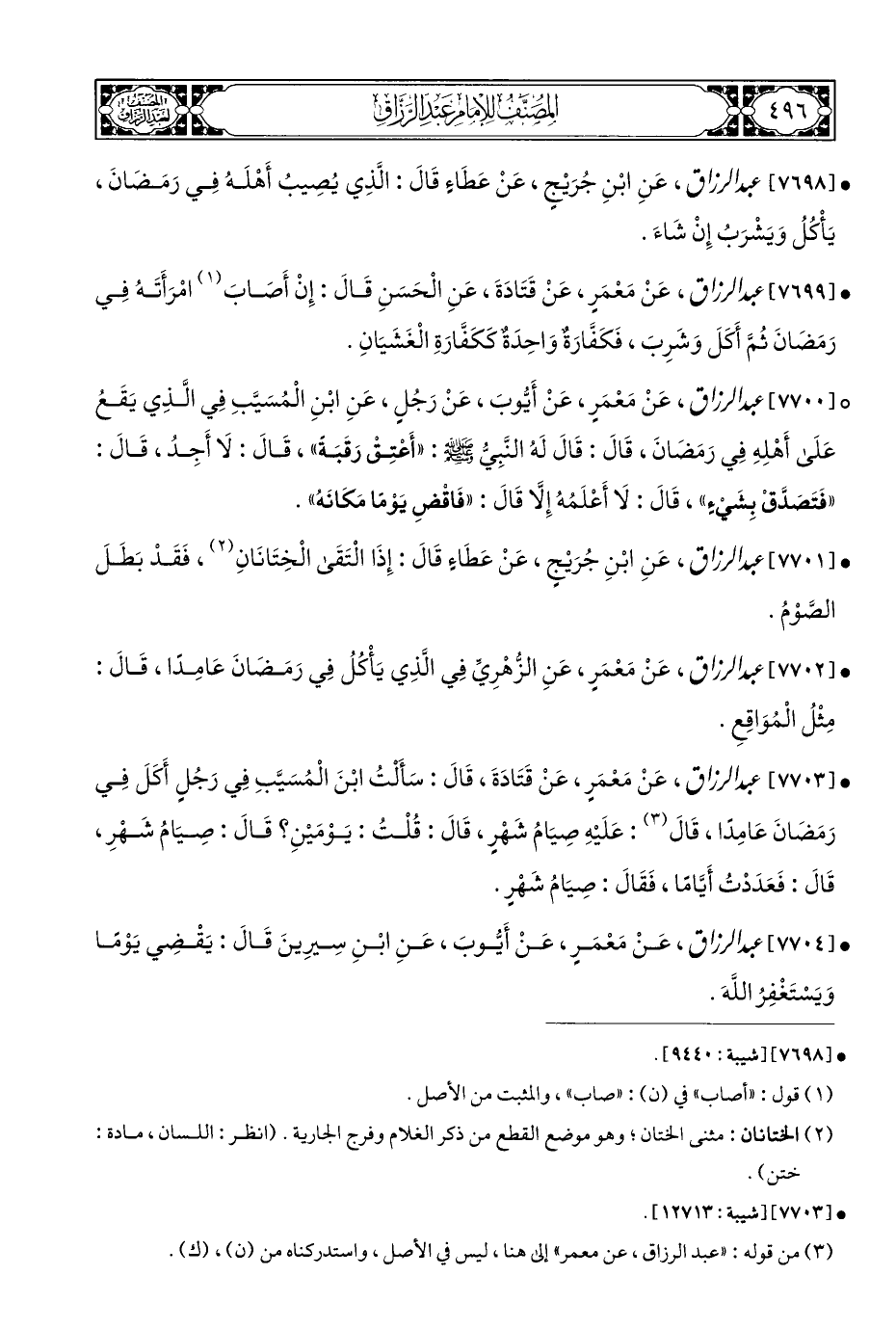 (¬٣) من قوله: "عبد الرزاق، عن معمر" إلى هنا، ليس في الأصل، واستدركناه من (ن)، (ك).