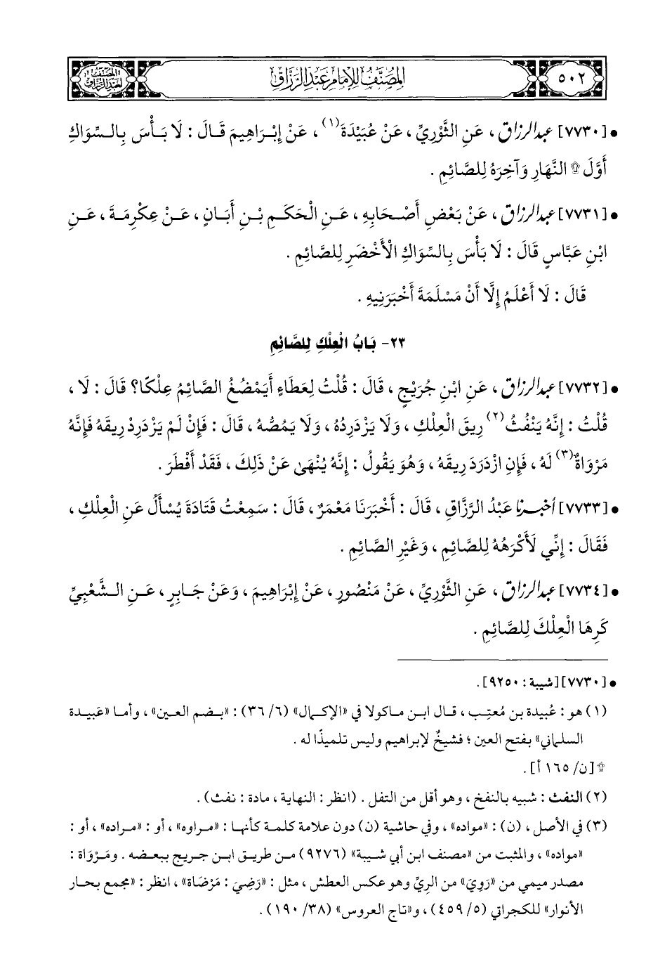 • [٧٧٣٠] عبد الرزاق، عَنِ الثَّوْريِّ، عَنْ عُبَيْدَةَ (¬١)، عَنْ إِبْرَاهِيمَ قَالَ: لَا بَأْسَ بِالشّوَاكِ أَوَّلَ * النَّهَارِ وَآخِرَهُ لِلصَّائِمِ.