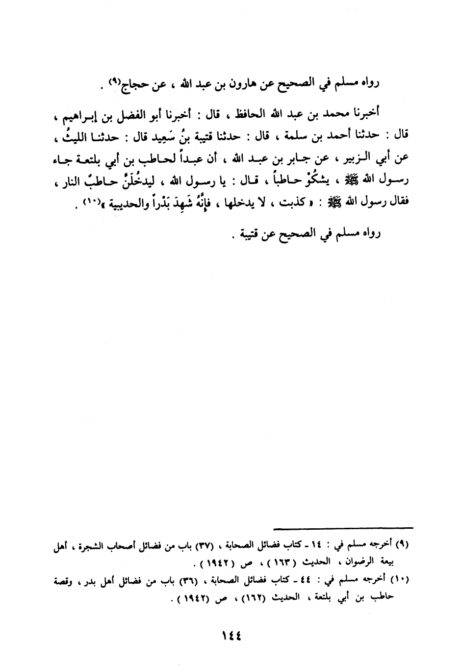 رَوَاهُ مُسْلِمٌ فِي الصَّحِيحِ عَنْ هَارُونَ بْنِ عَبْدِ اللهِ، عَنْ حَجَّاجٍ [ (9) ] .