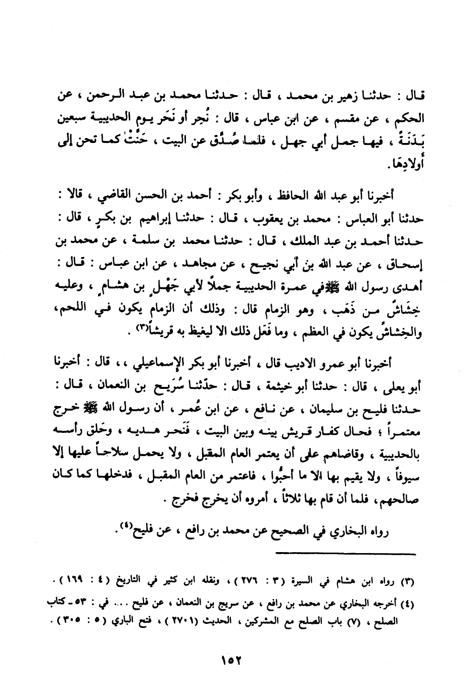 [ (4) ] أخرجه الْبُخَارِيُّ عَنْ مُحَمَّدِ بْنِ رَافِعٍ، عن سريج بن النعمان، عن فليح ... في: 53- كتاب الصلح، (7) باب الصلح مع المشركين، الحديث (2701) ، فتح الباري (5: 305) .