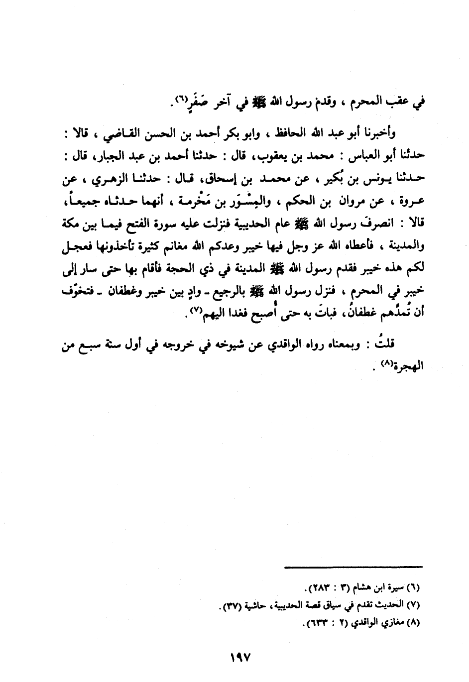 قُلْتُ: وَبِمَعْنَاهُ رَوَاهُ الْوَاقِدِيُّ عَنْ شُيُوخِهِ فِي خُرُوجِهِ فِي أَوَّلِ سَنَةِ سَبْعٍ مِنَ الْهِجْرَةِ [ (8) ] .