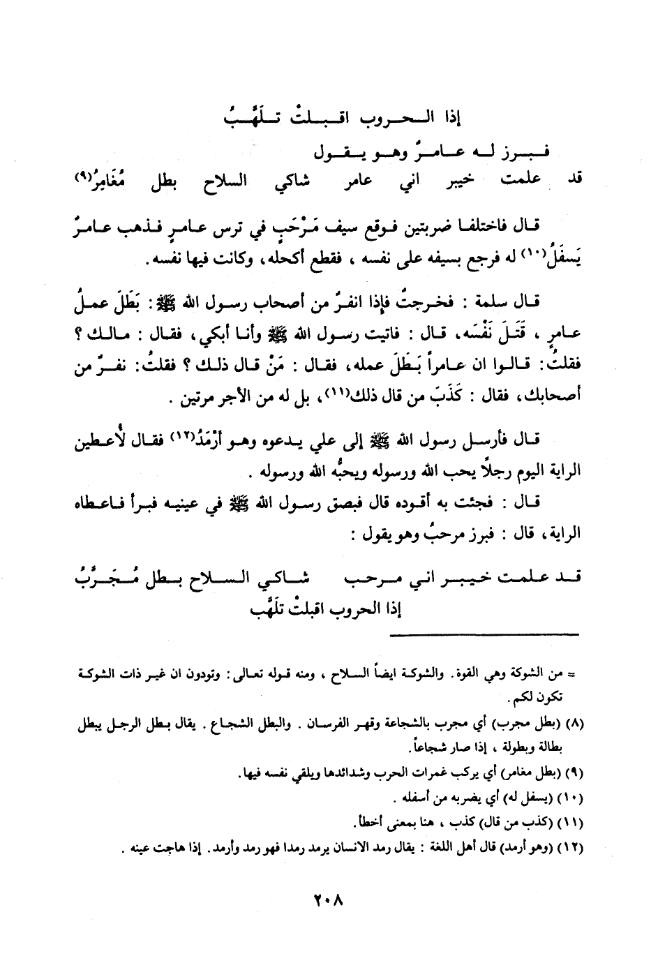 قَدْ عَلِمَتْ خَيْبَرُ أَنِّي عَامِرُ ... شَاكِي السِّلَاحِ بَطَلٌ مُغَامِرُ [ (9) ]