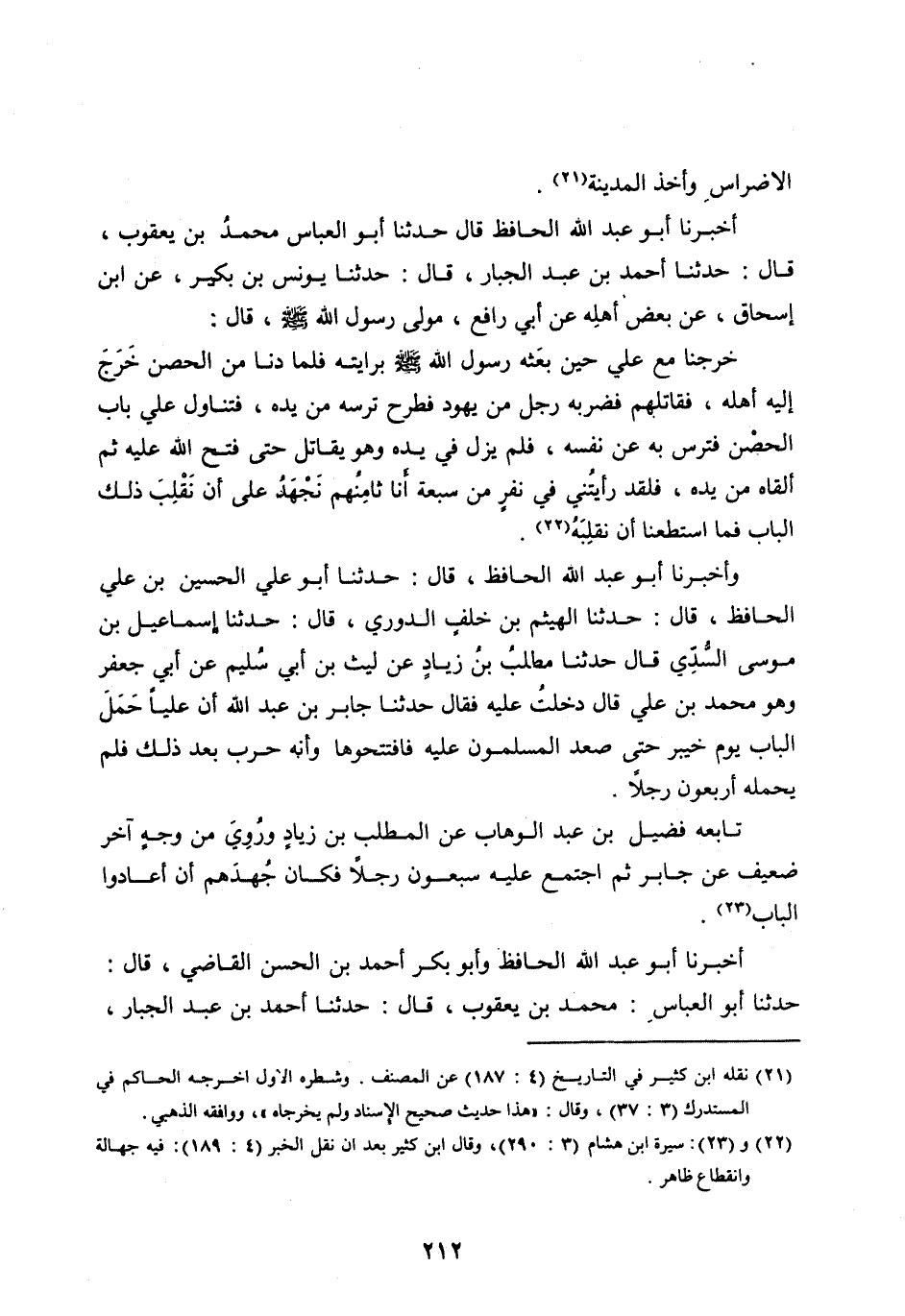 [ (22، 23) ] : سيرة ابن هشام (3: 290) ، وقال ابن كثير بعد ان نقل الخبر (4: 189) : فيه جهالة وانقطاع ظاهر.