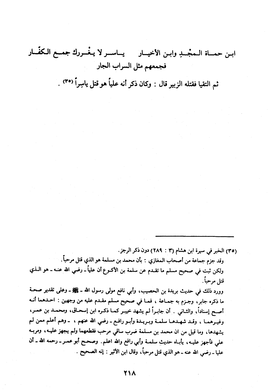 ابْنُ حُمَاةِ الْمَجْدِ وَابْنُ الْأَخْيَارْ ... يَاسِرُ لَا يَغْرُرْكَ جَمْعُ الْكُفَّارْ