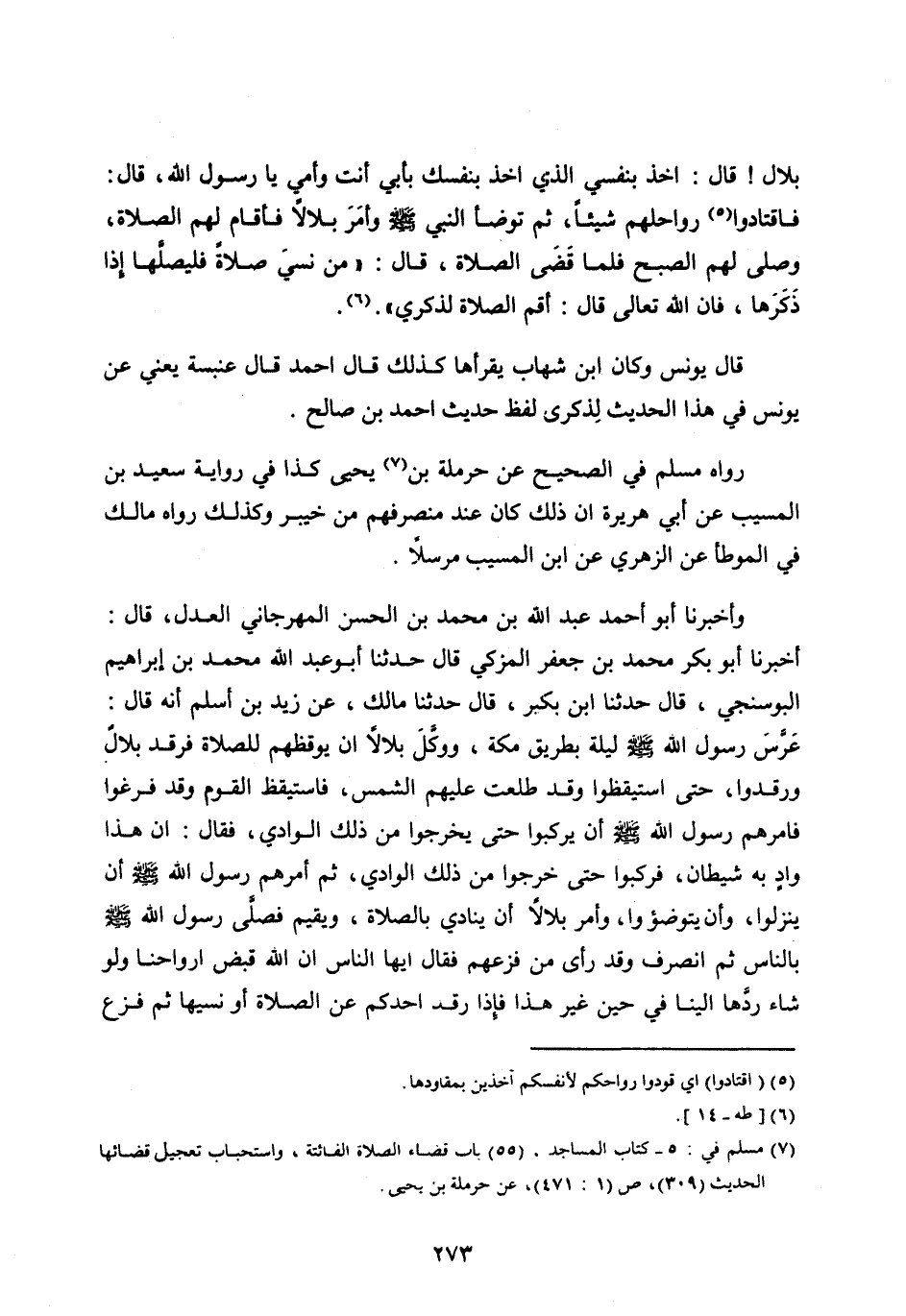 [ (7) ] مسلم في: 5- كتاب المساجد، (55) باب قضاء الصلاة الفائتة، واستحباب تعجيل قضائها الحديث (309) ، ص (1: 471) ، عَنْ حَرْمَلَةَ بْنِ يَحْيَى.