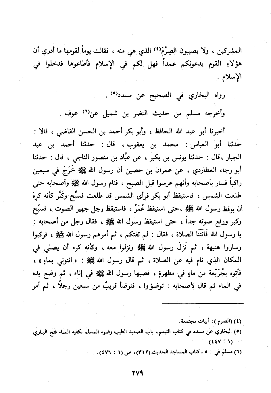 [ (5) ] البخاري عن مسدد في كتاب التيمم، باب الصعيد الطيب وضوء المسلم بكفيه الماء فتح الباري (1: 447) .