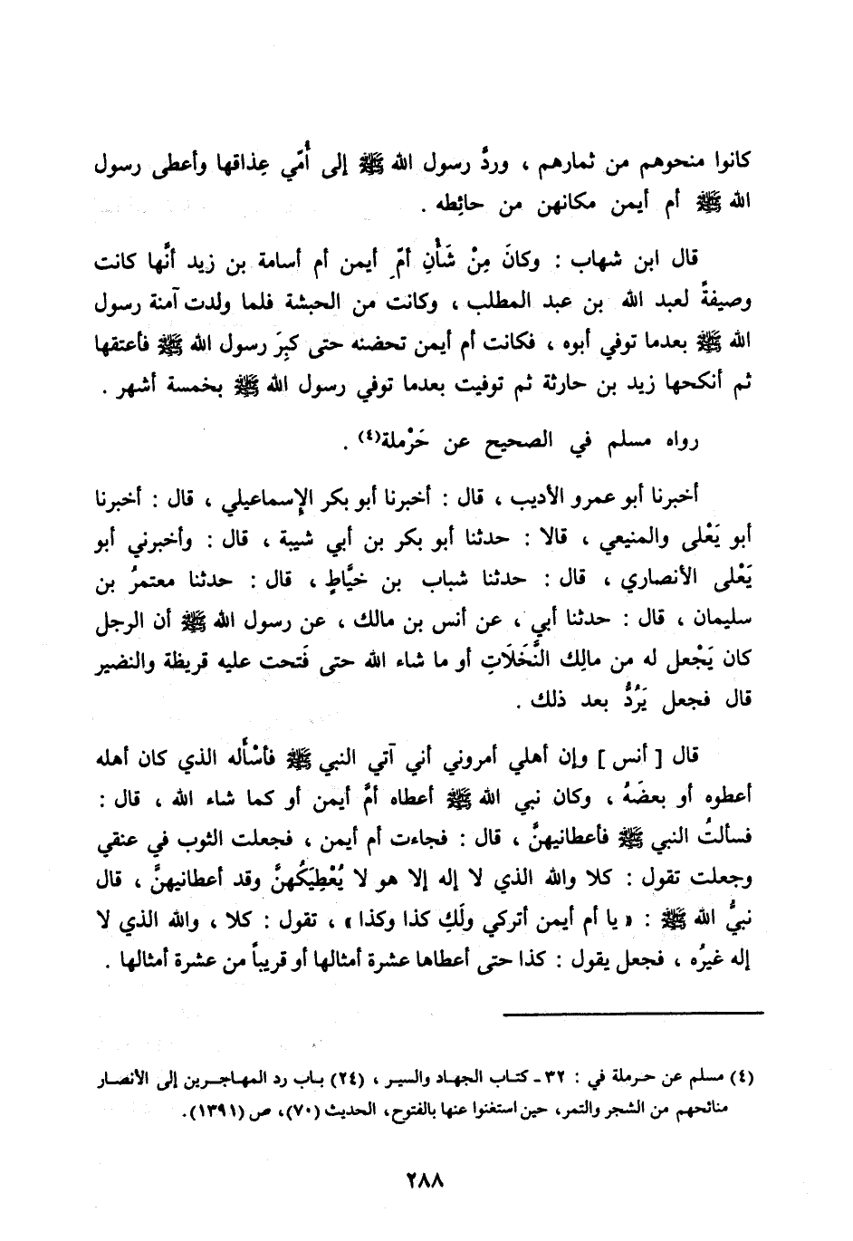 [ (4) ] مسلم عن حرملة في: 32- كتاب الجهاد والسير، (24) باب رَدَّ الْمُهَاجِرِينَ إِلَى الْأَنْصَارِ منائحهم من الشجر والتمر، حين استغنوا عنها بالفتوح، الحديث (70) ، ص (1391) .