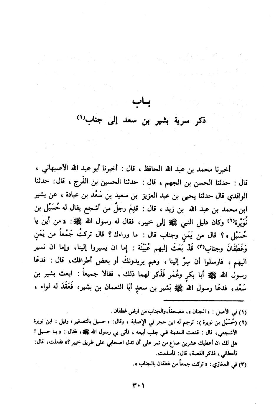 بَابُ ذِكْرِ سَرِيَّةِ بَشِيرِ بْنِ سَعْدٍ إِلَى جَنَابٍ [ (1) ]