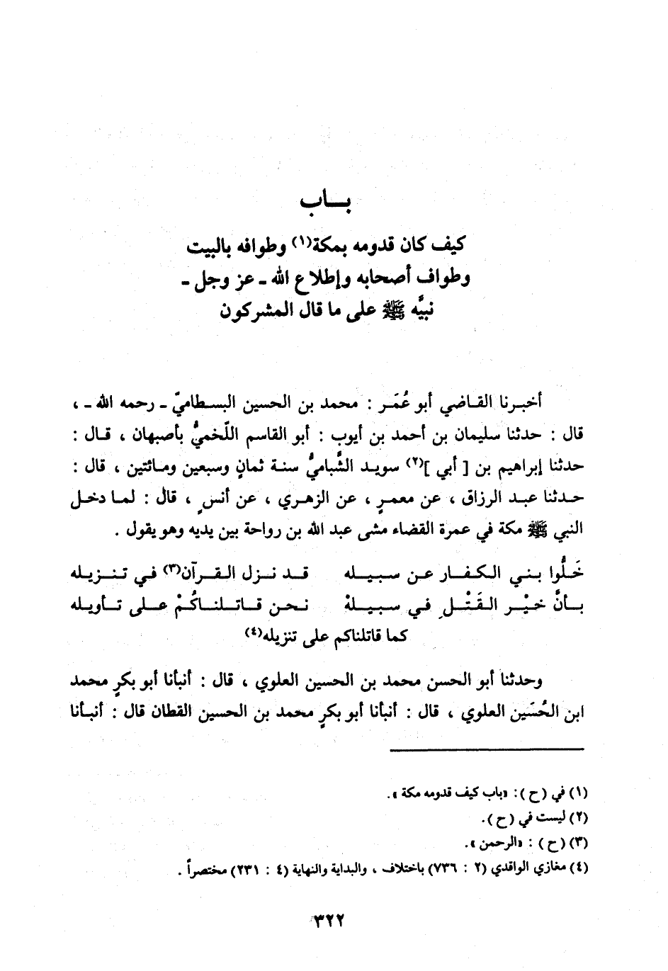 [ (4) ] وحَدَّثَنَا أَبُو الْحَسَنِ مُحَمَّدُ بْنُ الْحُسَيْنِ الْعَلَوِيُّ، قَالَ: أَنْبَأَنَا أَبُو بَكْرٍ مُحَمَّدُ ابن الْحُسَيْنِ الْعَلَوِيُّ، قَالَ: أَنْبَأَنَا أَبُو بَكْرٍ مُحَمَّدُ بْنُ الْحُسَيْنِ الْقَطَّانُ قَالَ: أَنْبَأَنَا