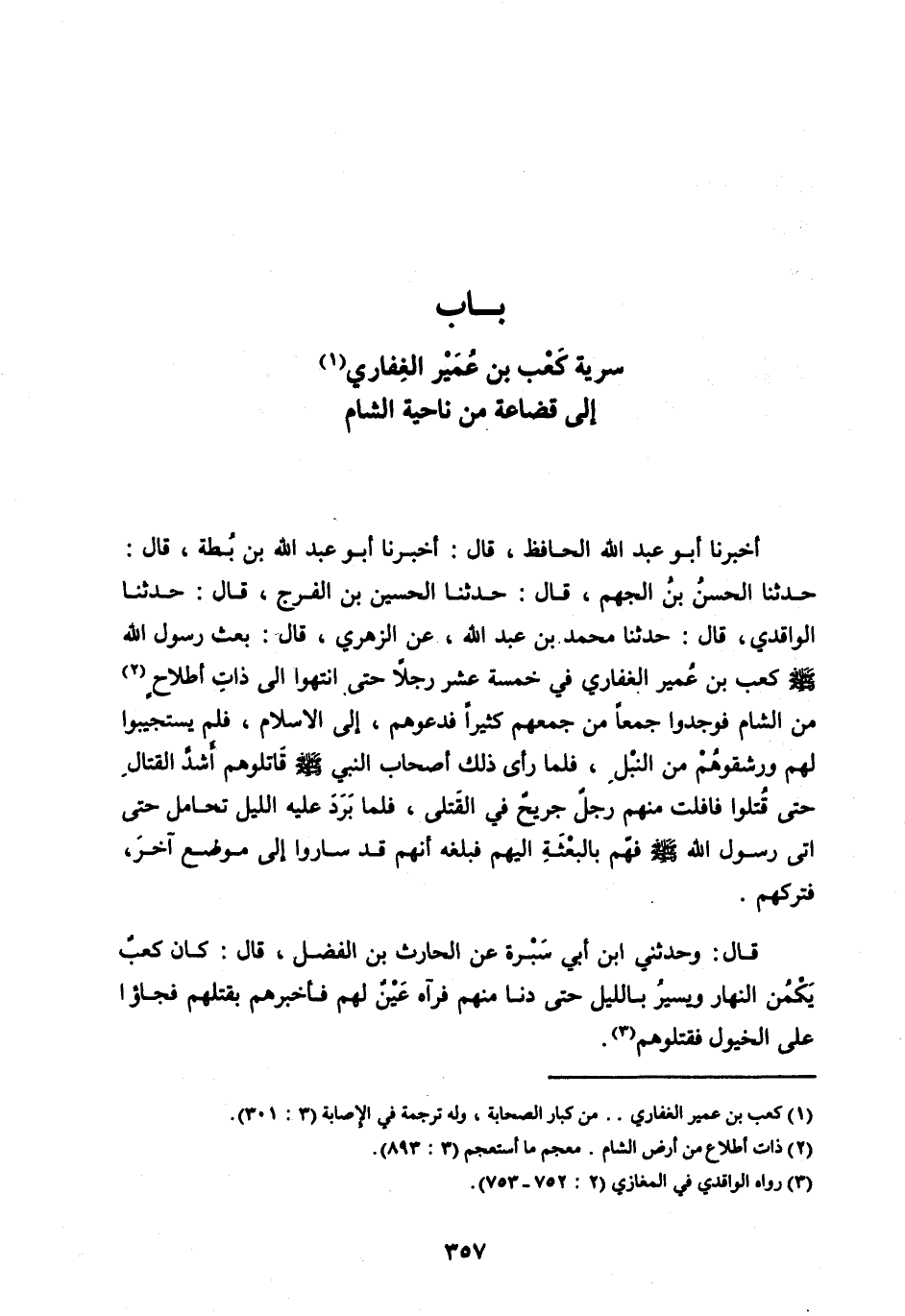 [ (1) ] كعب بن عمير الغفاري.. من كبار الصحابة، وله ترجمة في الإصابة (3: 301) .