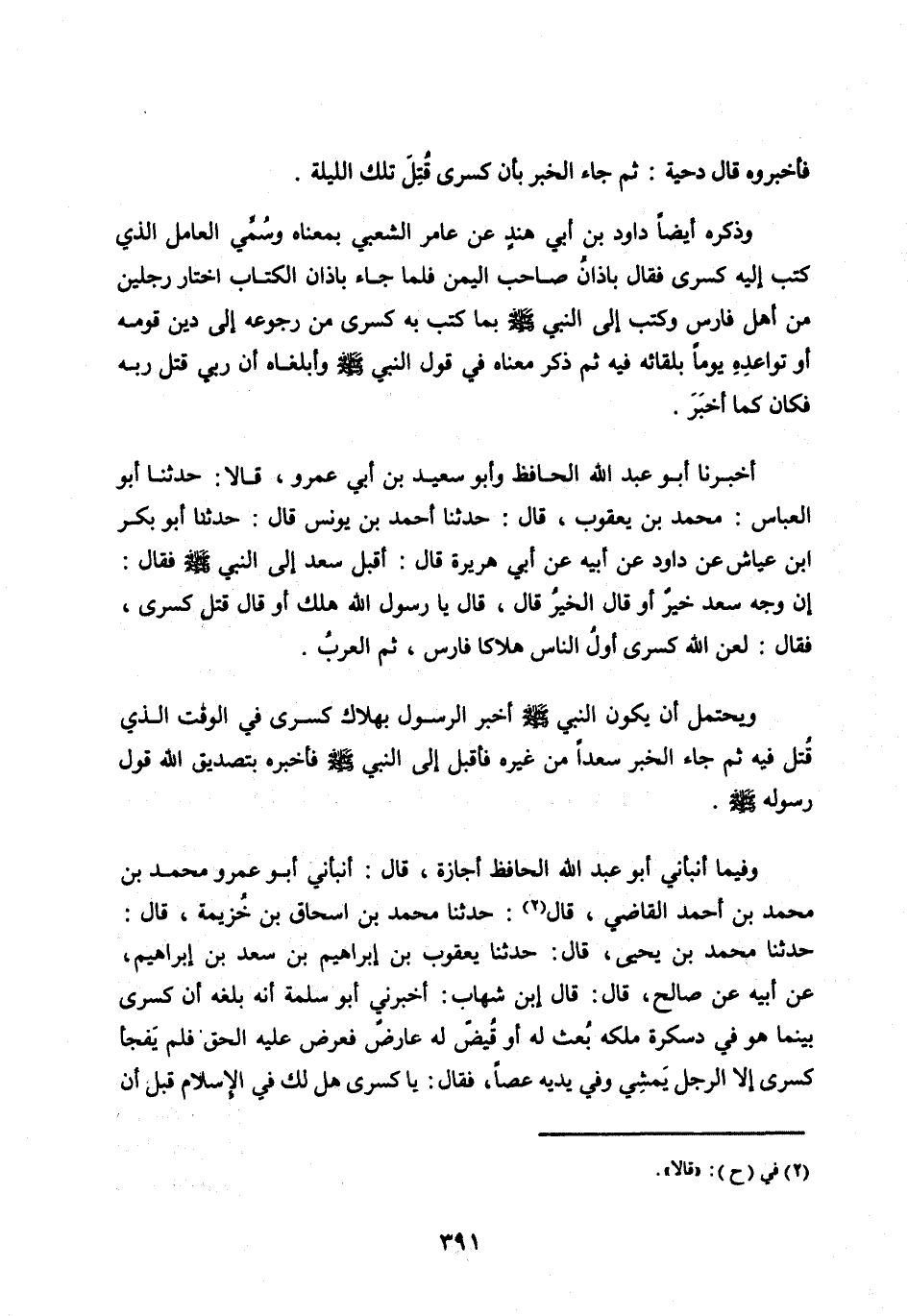 حَدَّثَنَا مُحَمَّدُ بْنُ يَحْيَى، قَالَ: حَدَّثَنَا يَعْقُوبُ بْنُ إِبْرَاهِيمَ بن سَعْدِ بْنِ إِبْرَاهِيمَ، عَنْ أَبِيهِ عَنْ صَالِحٍ، قَالَ: قَالَ ابْنُ شِهَابٍ: أَخْبَرَنِي أَبُو سَلَمَةَ أَنَّهُ بَلَغَهُ أَنَّ كِسْرَى بَيْنَمَا هُوَ فِي دَسْكَرَةِ مُلْكِهِ بُعِثَ لَهُ أَوْ قُيِّضَ لَهُ عَارِضٌ فَعَرَضَ عَلَيْهِ الْحَقَّ فَلَمْ يَفْجَأْ كِسْرَى إِلَّا الرَّجُلُ يَمْشِي وَفِي يَدَيْهِ عَصًا، فَقَالَ: يَا كِسْرَى هَلْ لَكَ فِي الْإِسْلَامِ قَبْلَ أن