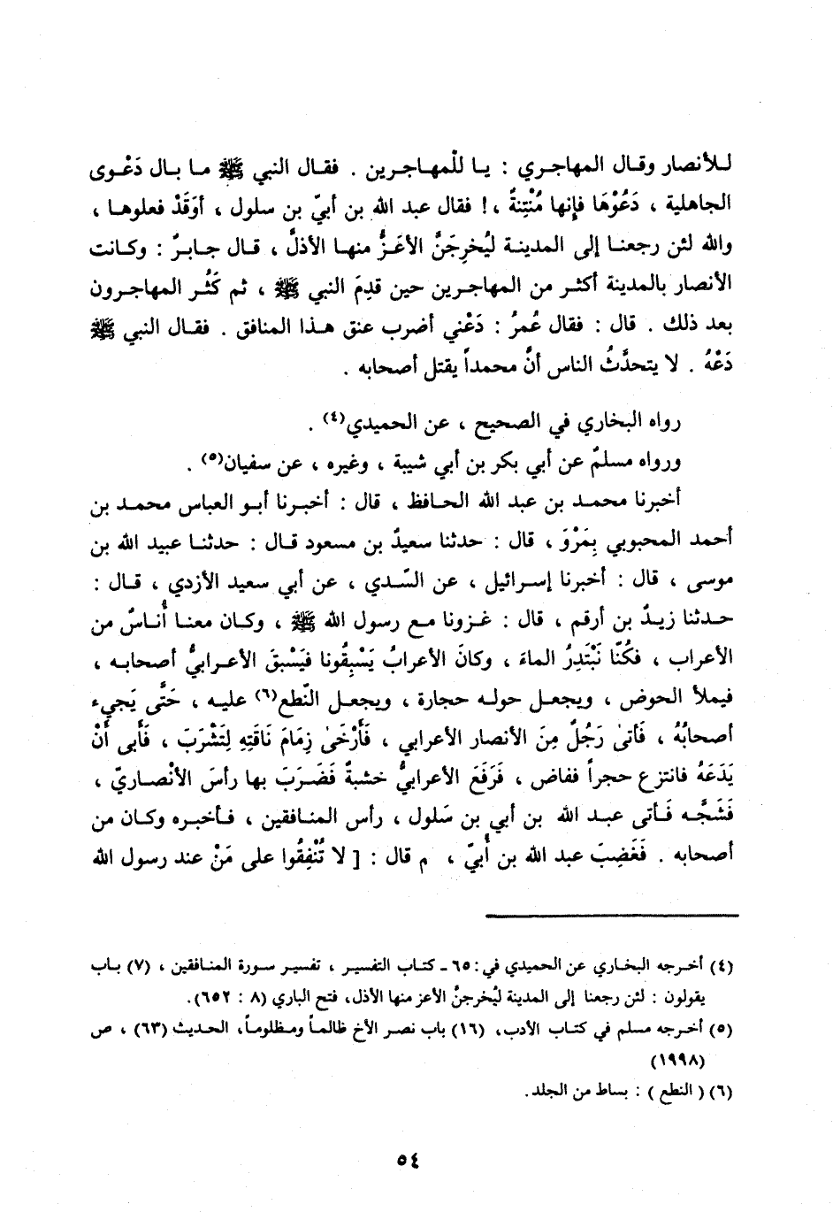 [ (9) ] أخرجه البخاري في تفسير سورة المنافقين، (2) باب اتخذوا ايمانهم جنّة ... ، فتح الباري (8: