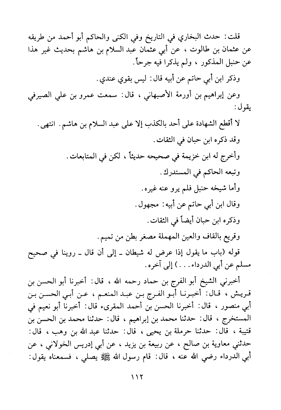 لا أقطع الشهادة على أحد بالكذب إلا على عبد السلام بن هاشم. انتهى.