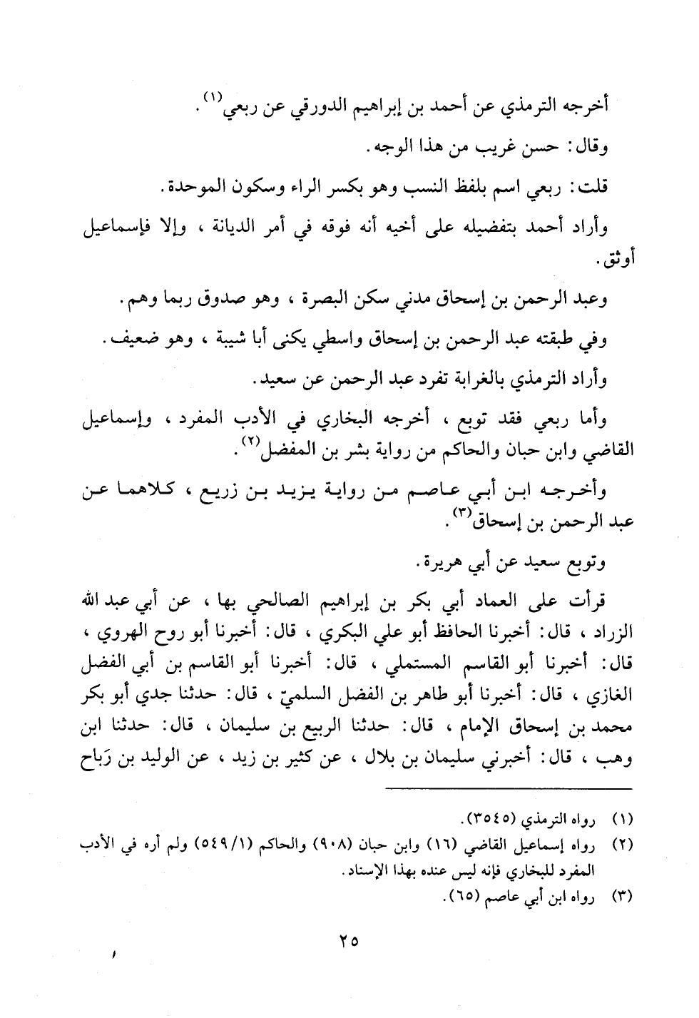أخرجه الترمذي عن أحمد بن إبراهيم الدورقي عن ربعي.