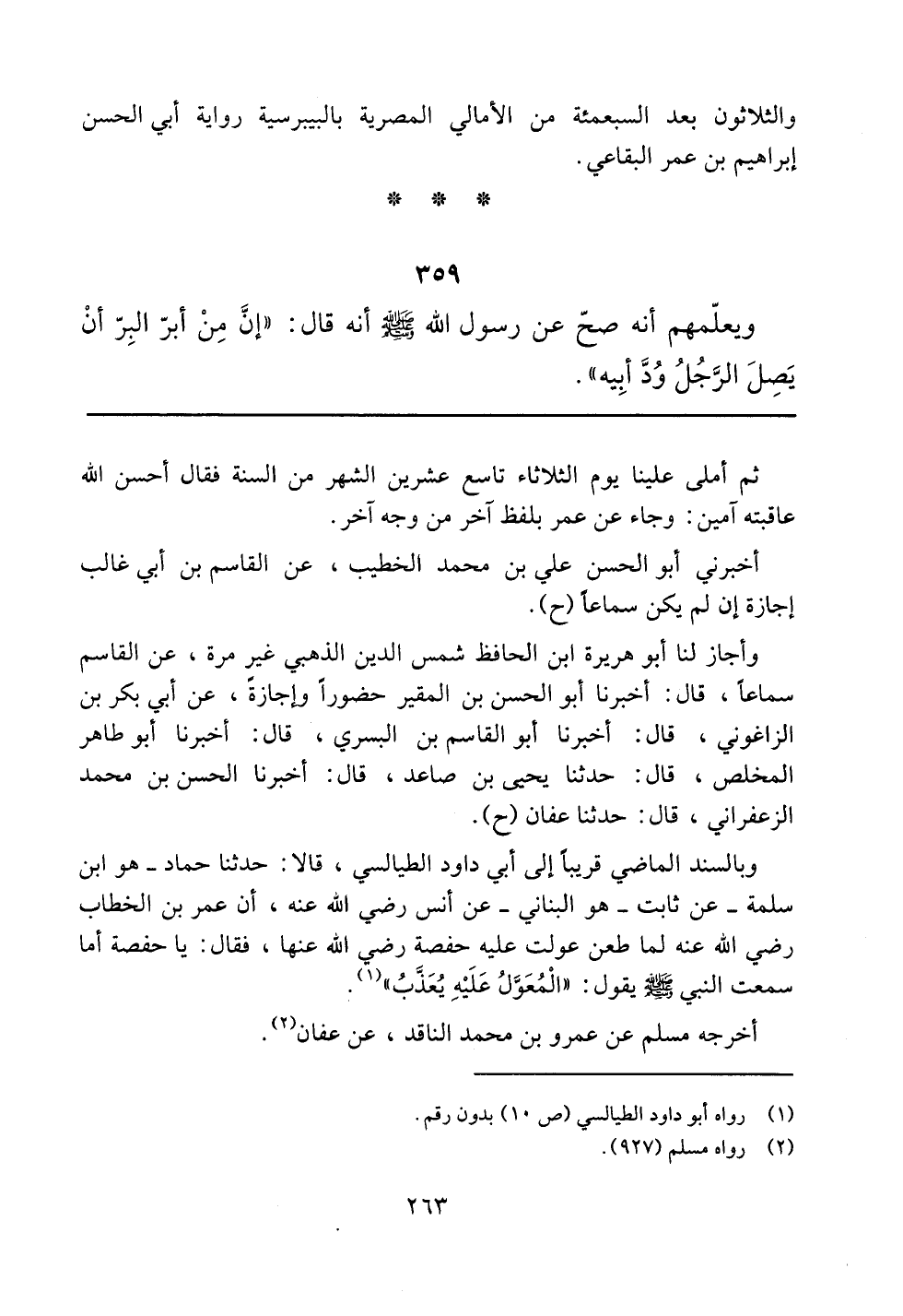 والثلاثون بعد السبعمئة من الأمالي المصرية بالبيبرسية رواية أبي الحسن إبراهيم بن عمر البقاعي.