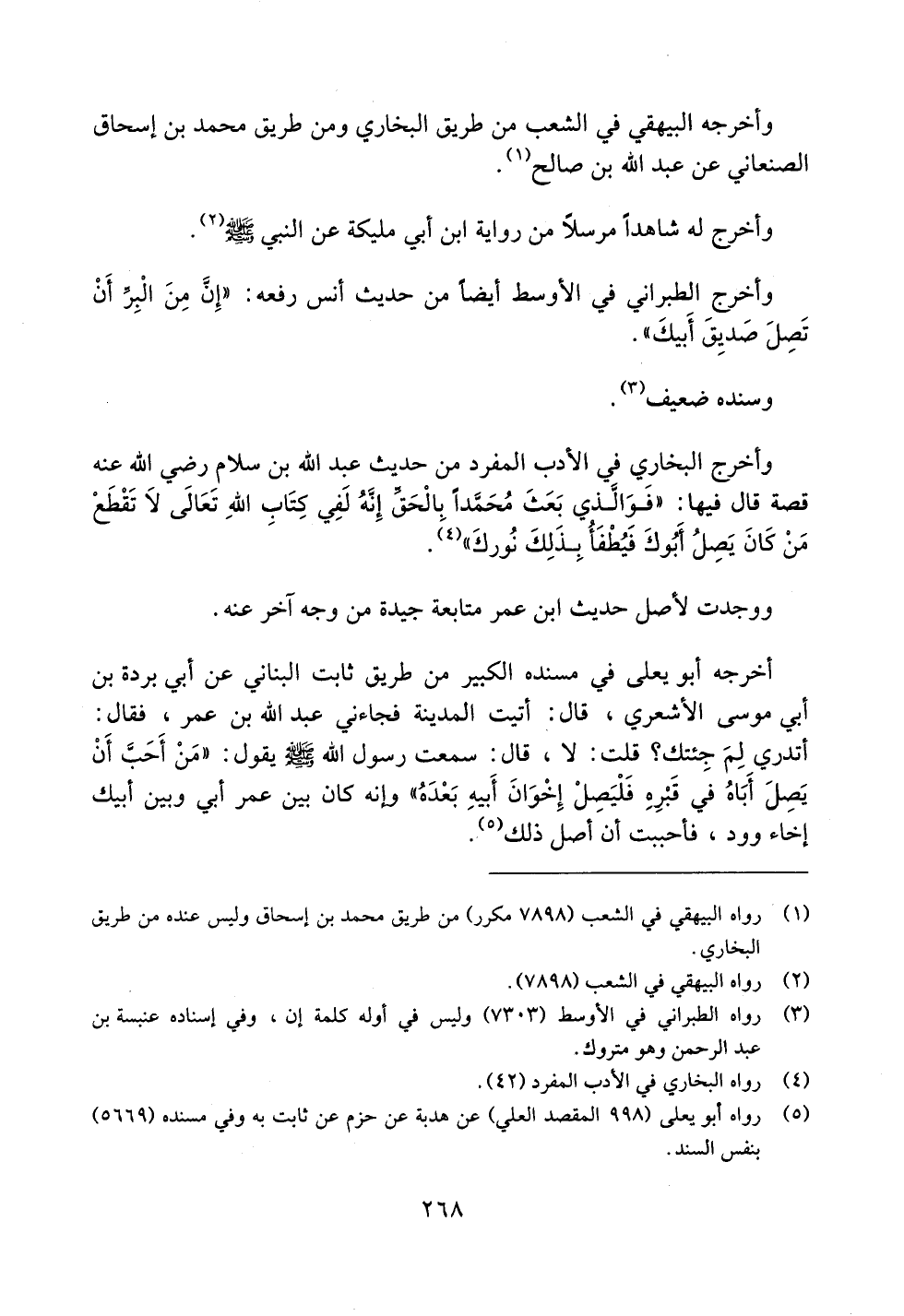 وأخرج الطبراني في الأوسط أيضاً من حديث أنس رفعه: ((إن من البر أن تصل صديق أبيك)).