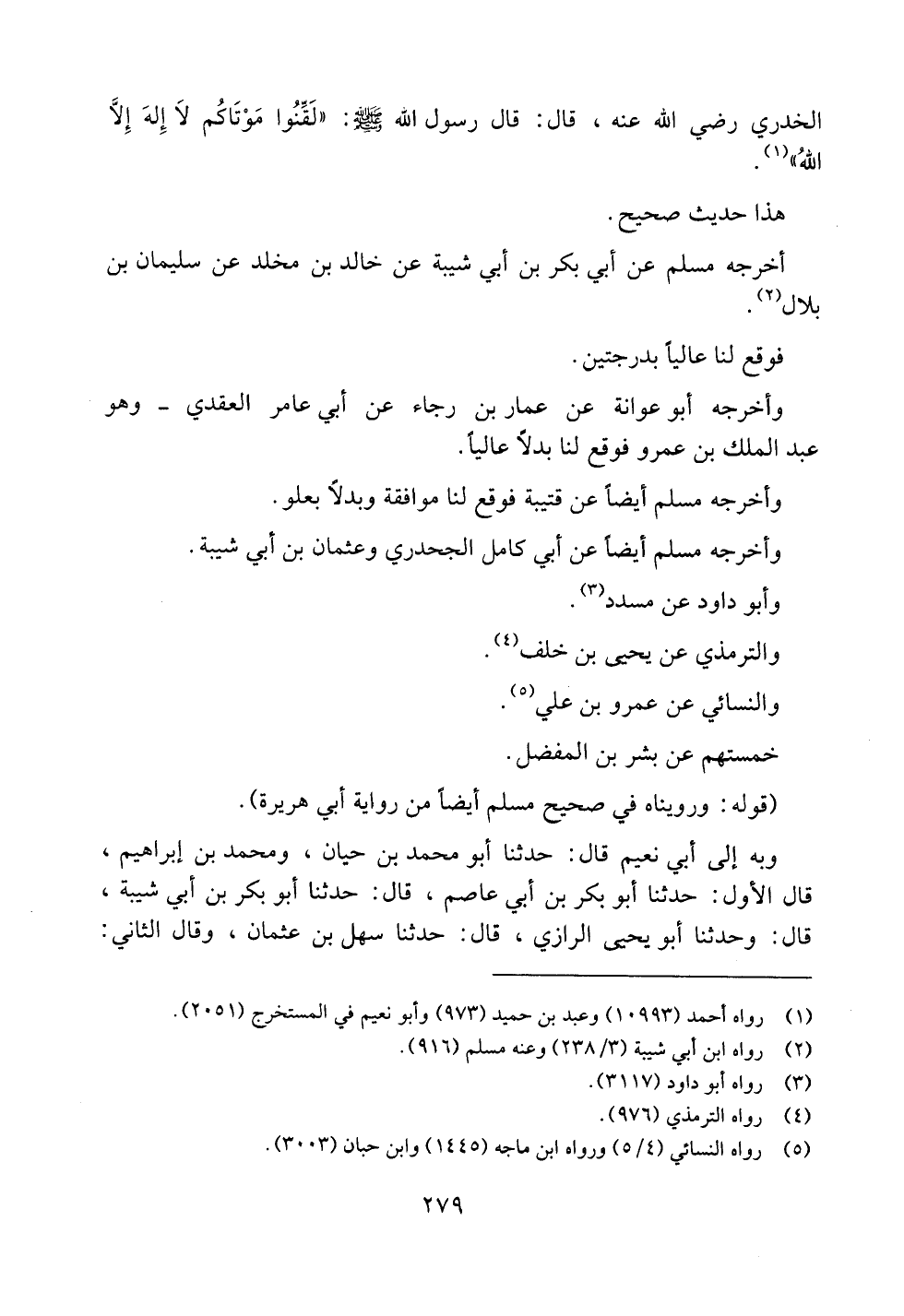 وأخرجه مسلم أيضاً عن قتيبة فوقع لنا موافقة وبدلاً بعلو.