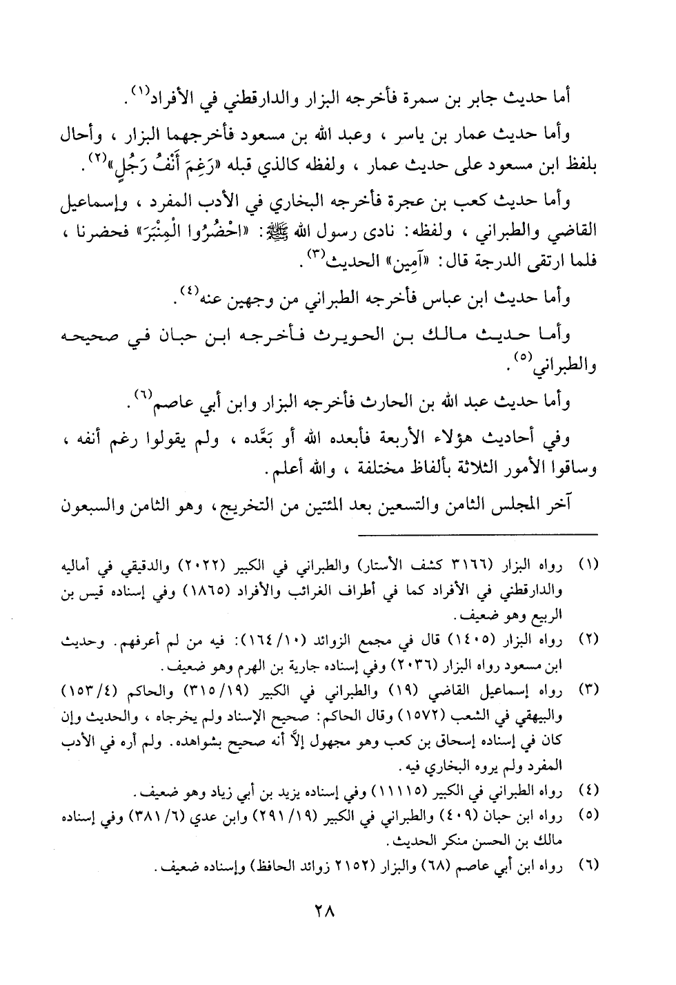 آخر المجلس الثامن والتسعين بعد المئتين من التخريج، وهو الثامن والسبعون