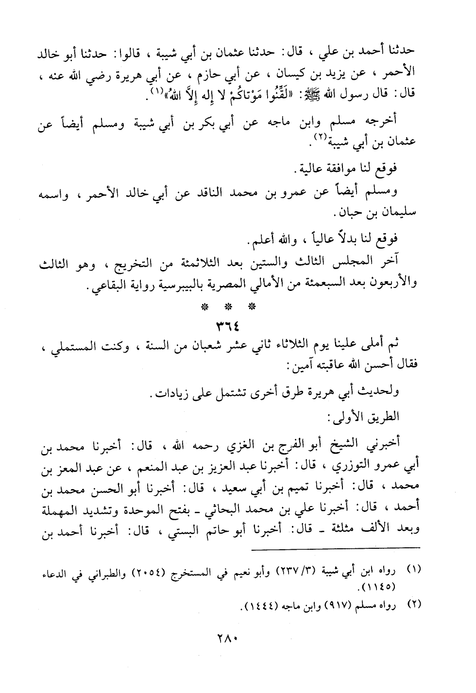 آخر المجلس الثالث والستين بعد الثلاثمئة من التخريج، وهو الثالث والأربعون بعد السبعمئة من الأمالي المصرية بالبيبرسية رواية البقاعي.