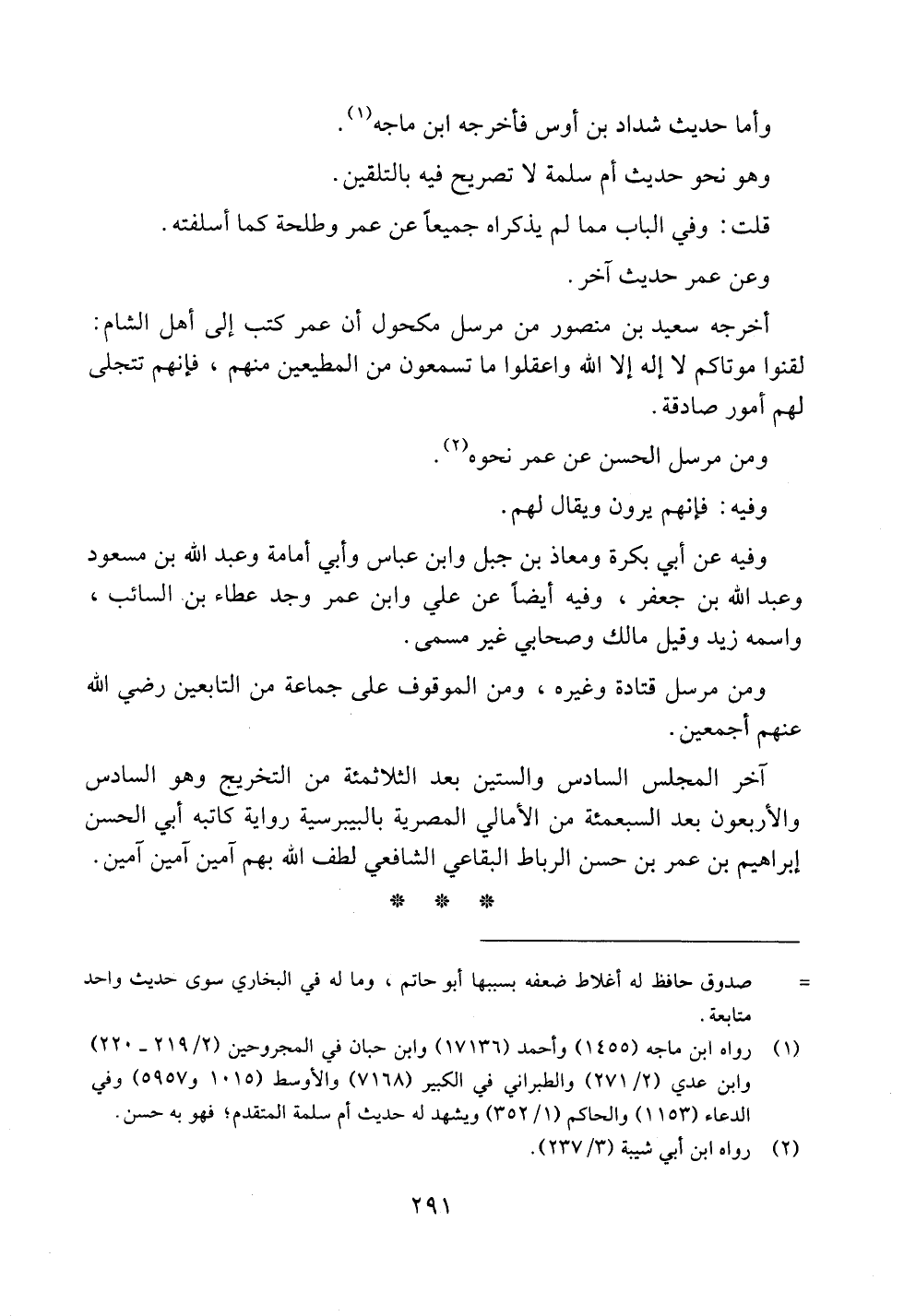 آخر المجلس السادس والستين بعد الثلاثمئة من التخريج وهو السادس والأربعون بعد السبعمئة من الأمالي المصرية بالبيبرسية رواية كاتبه أبي الحسن إبراهيم بن عمر بن حسن الرباط البقاعي الشافعي لطف الله بهم آمين آمين آمين.
