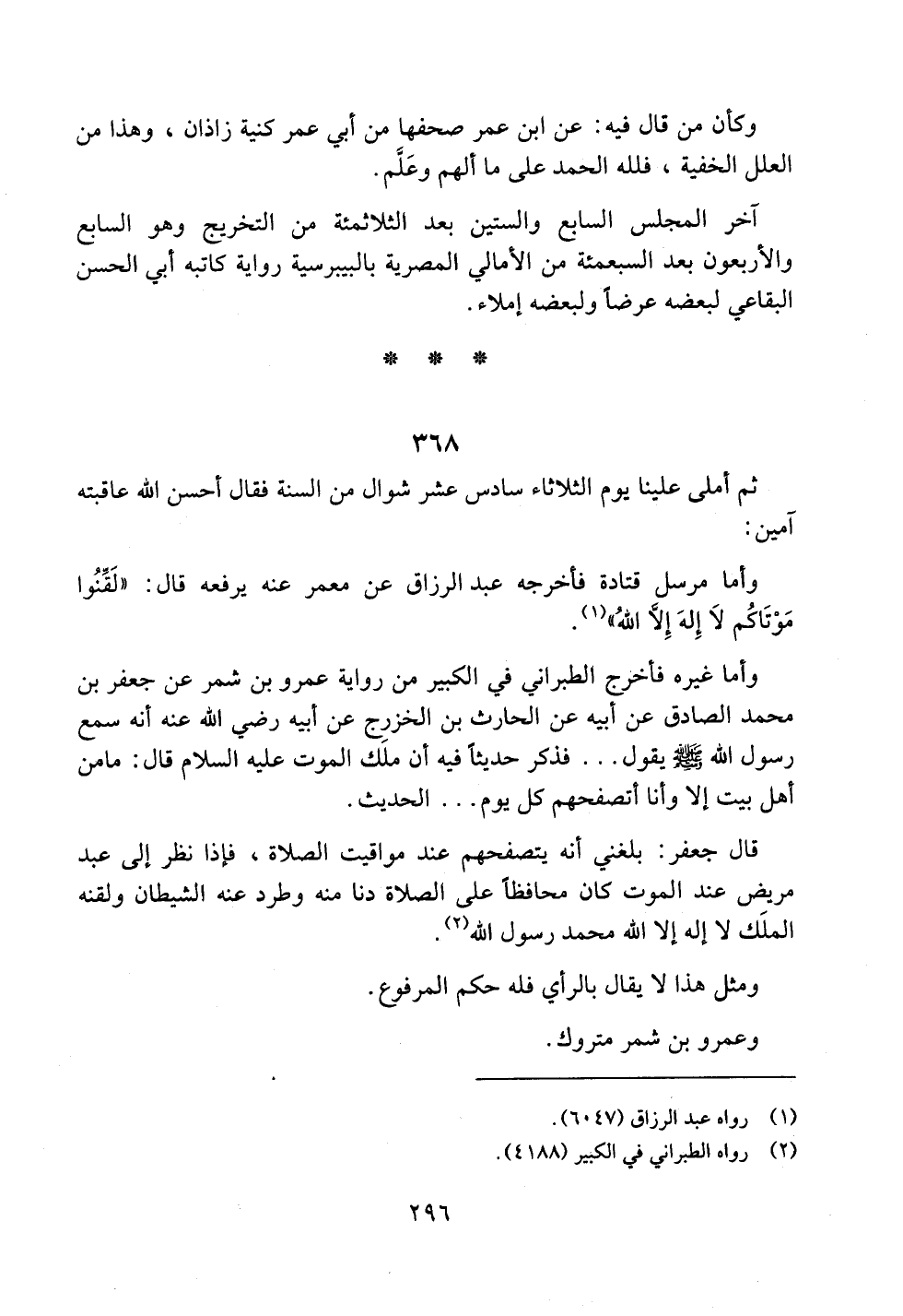آخر المجلس السابع والستين بعد الثلاثمئة من التخريج وهو السابع والأربعون بعد السبعمئة من الأمالي المصرية بالبيبرسية رواية كاتبه أبي الحسن البقاعي لبعضه عرضاً ولبعضه إملاء.