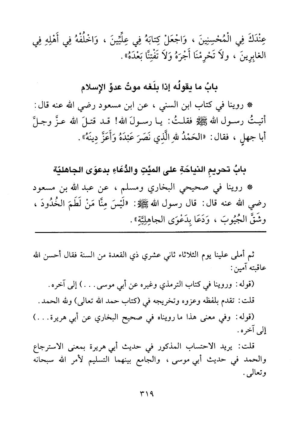 ثم أملى علينا يوم الثلاثاء ثاني عشري ذي القعدة من السنة فقال أحسن الله عاقبته آمين: