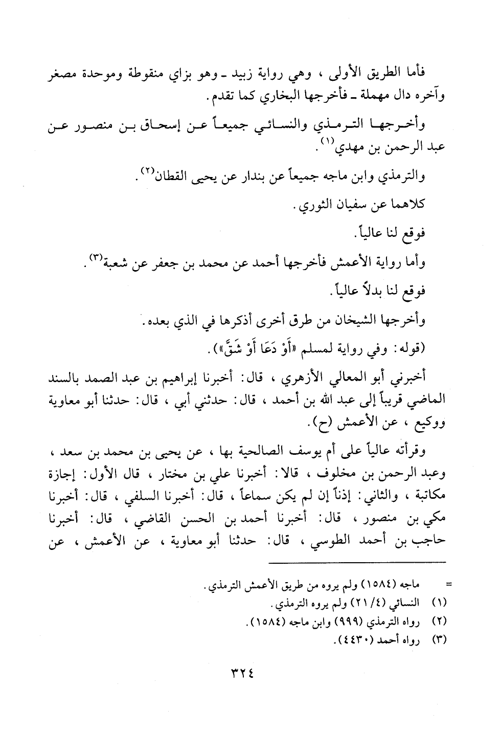 وأخرجها الترمذي والنسائي جميعاً عن إسحاق بن منصور عن عبد الرحمن بن مهدي.
