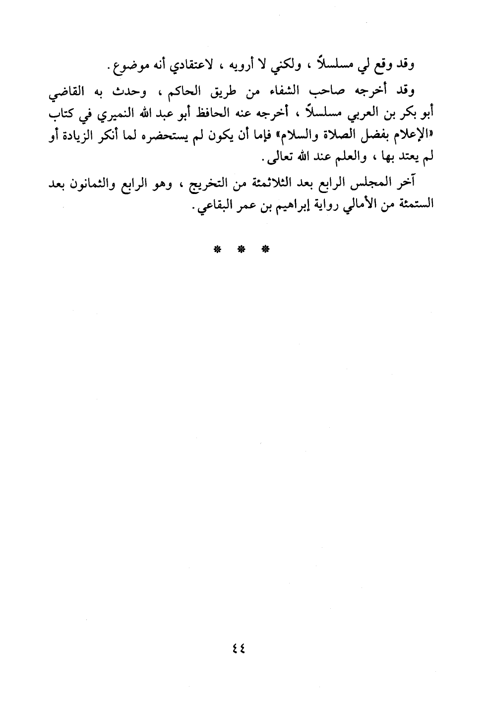 وقد وقع لي مسلسلاً، ولكني لا أرويه لاعتقادي أنه موضوع.