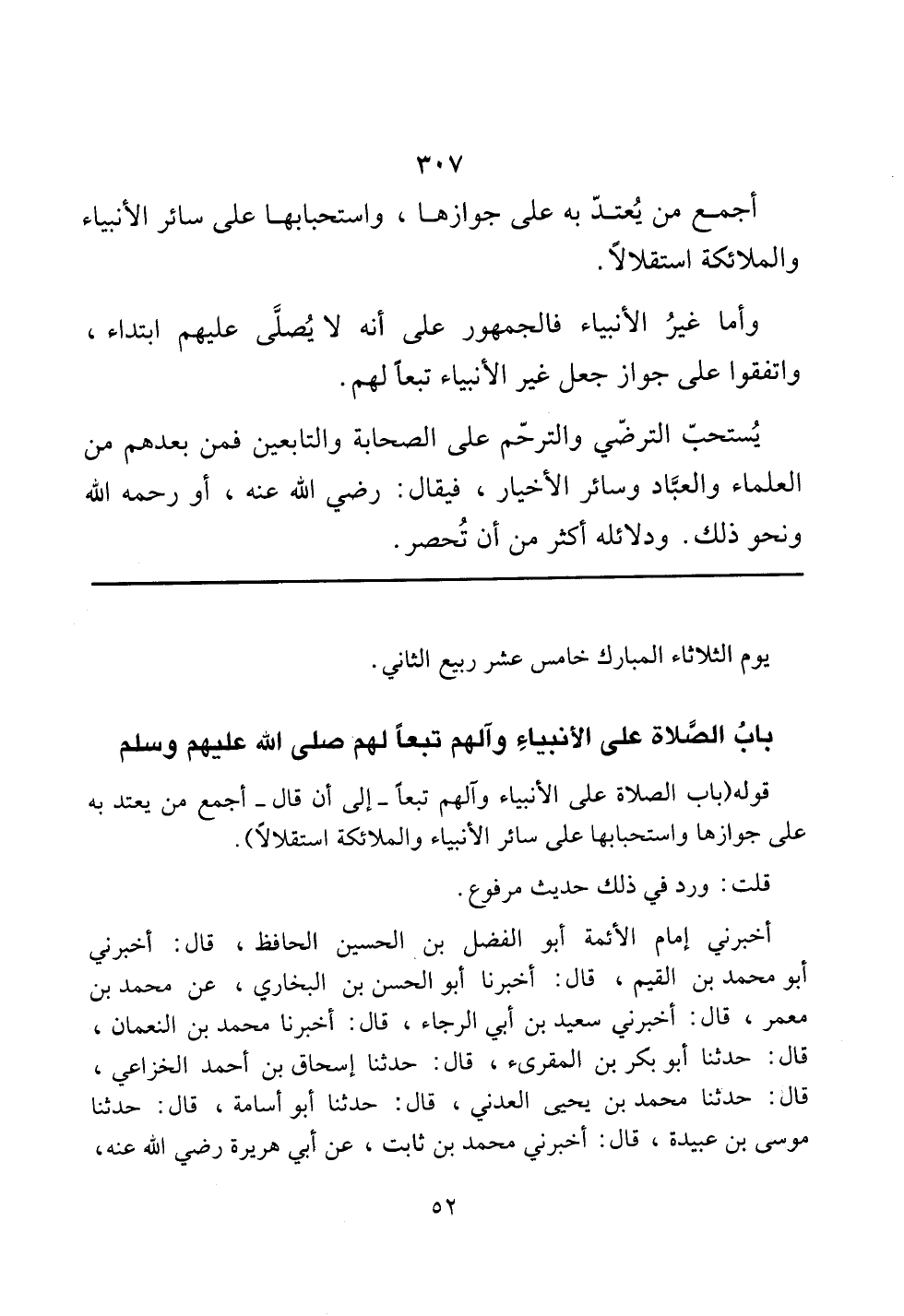 باب الصلاة على الأنبياء وآلهم تبعاً لهم صلى الله عليهم وسلم