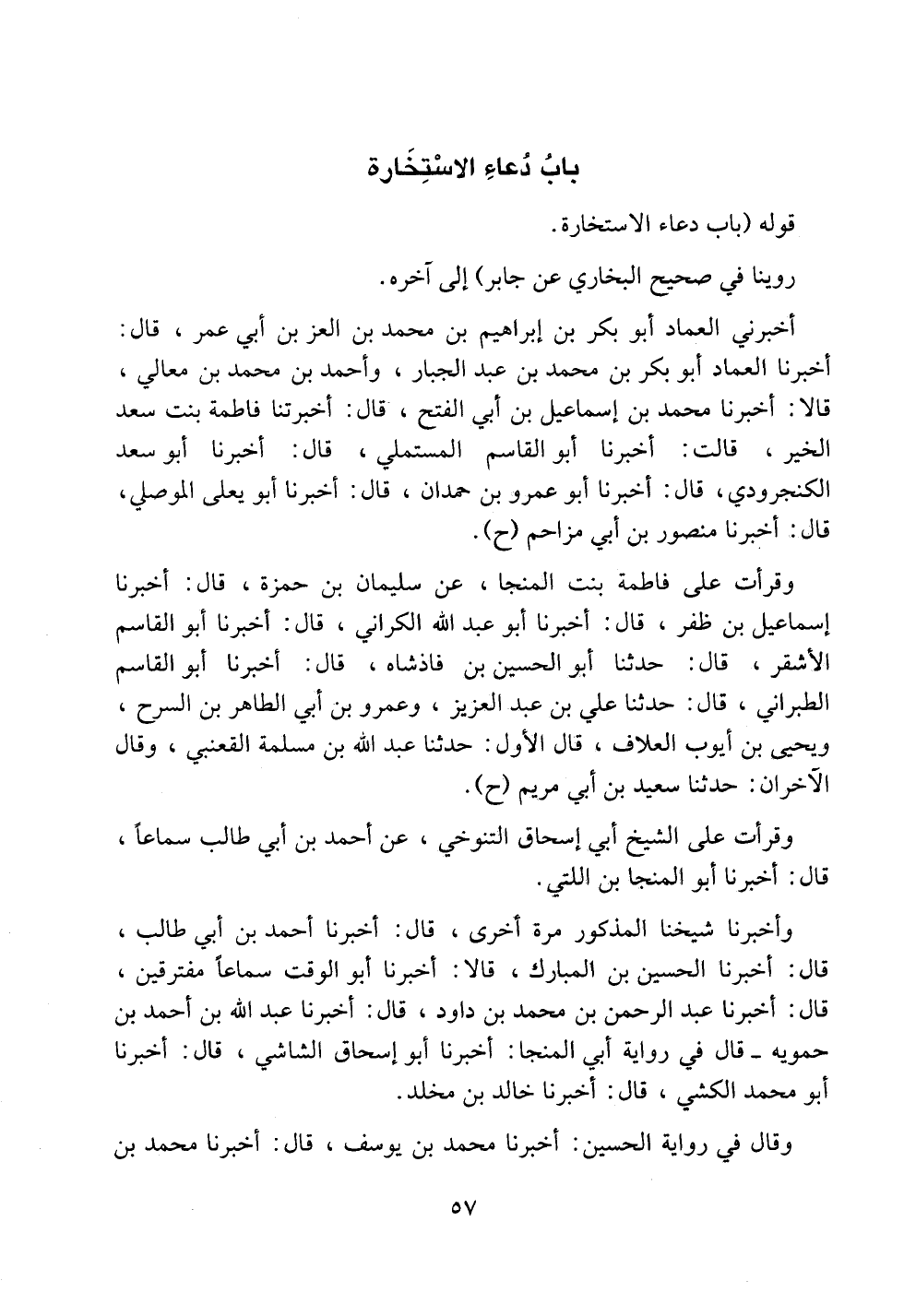 وأخبرنا شيخنا المذكور مرة أخرى، قال: أخبرنا أحمد بن أبي طالب، قال: أخبرنا الحسين بن المبارك، قالا: أخبرنا أبو الوقت سماعاً مفترقين، قال: أخبرنا عبد الرحمن بن محمد بن داود، قال: أخبرنا عبد الله بن أحمد بن حمويه - قال في رواية أبي المنجا: أخبرنا أبو إسحاق الشاشي، قال: أخبرنا أبو محمد الكشي، قال: أخبرنا خالد بن مخلد.