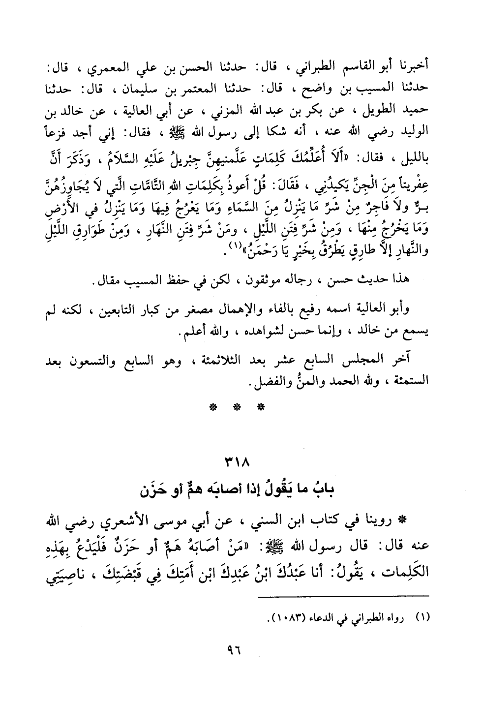 آخر المجلس السابع عشر بعد الثلاثمئة، وهو السابع والتسعون بعد الستمئة، ولله الحمد والمن والفضل.