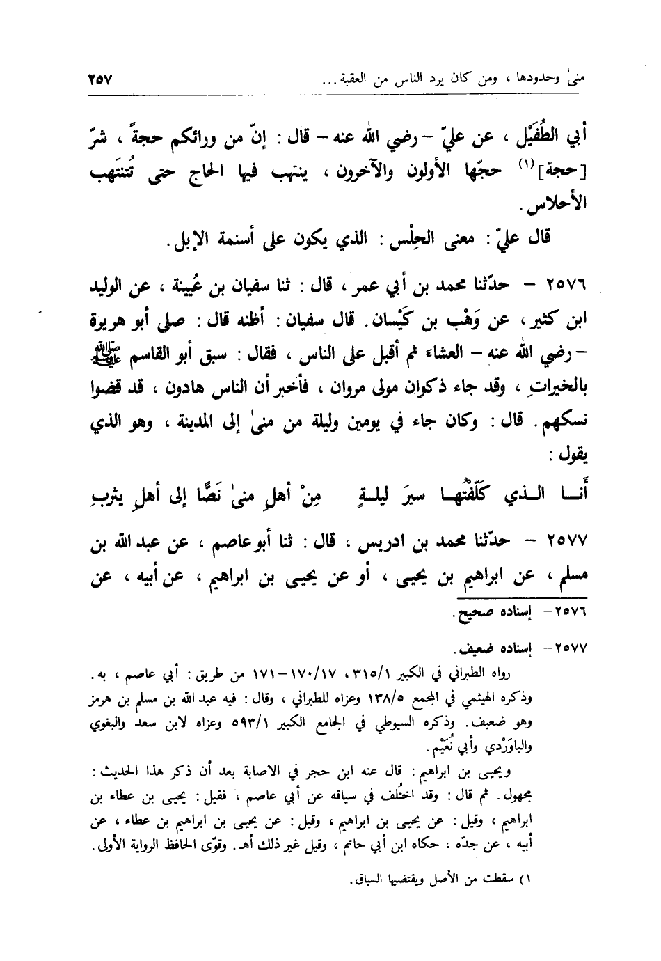 2623 - حَدَّثَنِي سَعِيدُ بْنُ عَبْدِ الرَّحْمَنِ قَالَ: ثنا عَبْدُ اللهِ بْنُ الْوَلِيدِ، عَنْ سُفْيَانَ، عَنِ الْحَجَّاجِ، عَنْ وَبَرَةَ، عَنِ الْأَسْوَدِ قَالَ: إِنَّ عُمَرَ رَضِيَ اللهُ عَنْهُ §رَمَى الْجَمْرَةَ مِنْ فَوْقِهَا وَرَأَى الزِّحَامَ عَلَيْهَا. فَهَذِهِ الطَّرِيقُ تُسْلَكُ إِلَى الْيَوْمِ