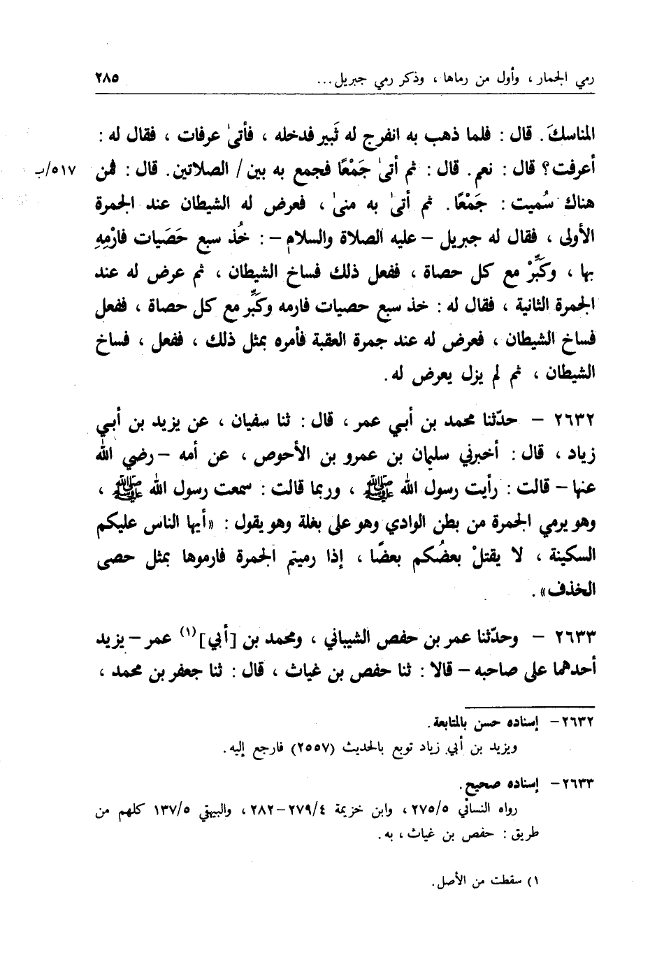 وَلَمْ أَرَ لَيْلَى بَعْدَ مَوْقِفِ سَاعَةٍ ... بِبَطْنِ مِنًى تَرْمِي جِمَارَ الْمُحَصَّبِ