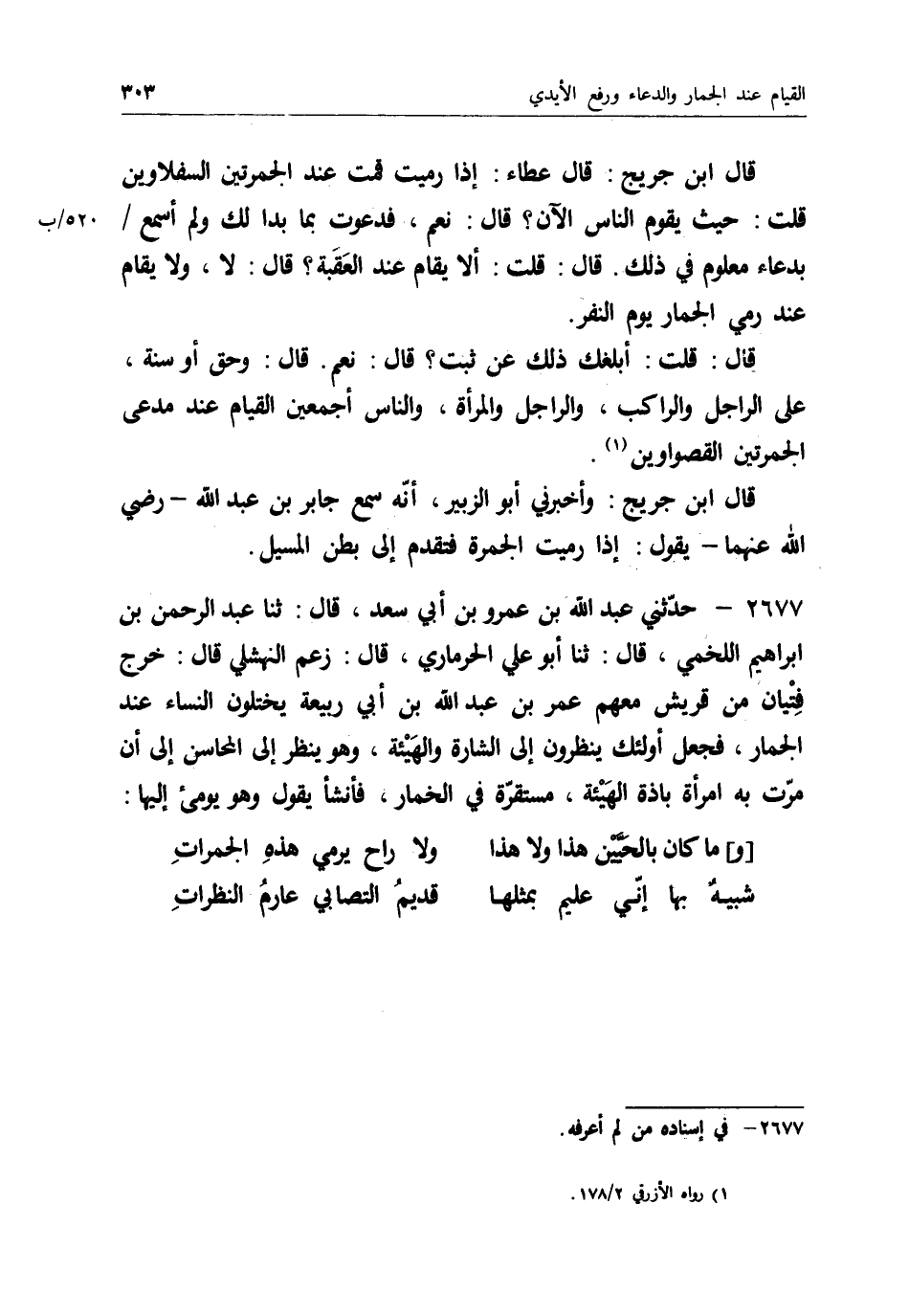 2722 - حَدَّثَنَا سَعِيدُ بْنُ عَبْدِ الرَّحْمَنِ قَالَ: ثنا عَبْدُ الْمَجِيدِ بْنُ أَبِي رَوَّادٍ، عَنِ ابْنِ جُرَيْجٍ، عَنْ عَطَاءٍ قَالَ: إِنَّ النَّبِيَّ صَلَّى اللَّهُ عَلَيْهِ وَسَلَّمَ §غَدَا إِلَى عَرَفَةَ "، فَرَأَيْتُ الْأَئِمَّةَ يُصَلُّونَ الصُّبْحَ ثُمَّ يَغْدُونَ بَعْدَهَا بِسَاعَةٍ. قَالَ: فَلَا أَظُنُّهُمْ إِلَّا يَتَحَرَّوْنَ بِذَلِكَ فِعْلَ نَبِيِّهِمْ صَلَّى اللَّهُ عَلَيْهِ وَسَلَّمَ