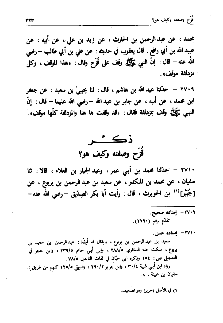 2765 - حَدَّثَنَا مُحَمَّدُ بْنُ عَبْدِ الْأَعْلَى قَالَ: ثنا الْمُعْتَمِرُ بْنُ سُلَيْمَانَ قَالَ: قَرَأْتُ عَلَى فُضَيْلٍ، عَنْ أَبِي حَرِيزٍ، أَنَّهُ سَمِعَ سَعِيدَ بْنَ جُبَيْرٍ يُحَدِّثُ أَنَّ رَجُلًا سَأَلَ عَبْدَ اللهِ بْنَ عُمَرَ رَضِيَ اللهُ عَنْهُمَا عَنْ صَوْمِ يَوْمِ عَرَفَةَ، فَقَالَ: " كُنَّا وَنَحْنُ مَعَ رَسُولِ اللهِ صَلَّى اللَّهُ عَلَيْهِ وَسَلَّمَ §نَعْدِلُهُ بِصَوْمِ سَنَةٍ "