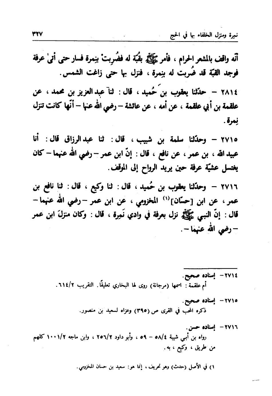 2776 - حَدَّثَنَا مُحَمَّدُ بْنُ يَحْيَى، وَيَعْقُوبُ بْنُ حُمَيْدٍ قَالَا: ثنا سُفْيَانُ، عَنْ عَمْرِو بْنِ دِينَارٍ، قَالَ ابْنُ أَبِي عُمَرَ: عَنْ عَطَاءٍ، عَنْ عُبَيْدِ بْنِ عُمَيْرٍ قَالَ: إِنَّ عُمَرَ بْنَ الْخَطَّابِ رَضِيَ اللهُ عَنْهُ §لَمْ يَصُمْ يَوْمَ عَرَفَةَ "