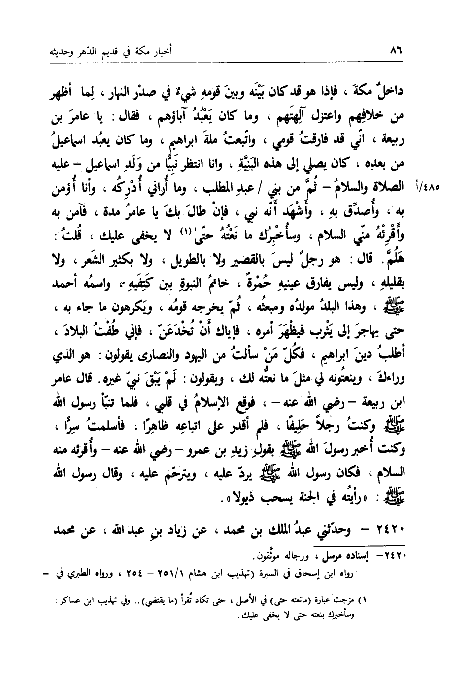 2458 - حَدَّثَنَا ابْنُ كَاسِبٍ قَالَ: ثنا إِبْرَاهِيمُ بْنُ أَبِي بَكْرٍ قَالَ: رَأَيْتُ مُحَمَّدَ بْنَ الْمُنْكَدِرِ §دَخَلَ مِنْ ثَنِيَّةِ الْمَدَنِيِّينَ حَتَّى أَتَى الْأَبْطَحَ فَأَنَاخَ بِهِ "