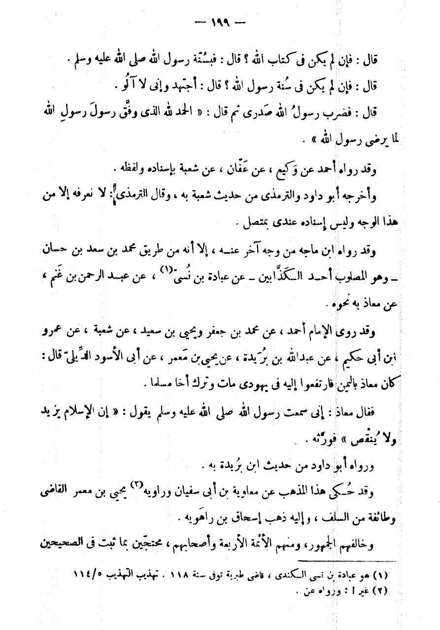 قَالَ: فَإِنْ لَمْ يَكُنْ فِي سُنَّةِ رَسُول الله؟ قَالَ: أجتهد وإنى لَا آلو.