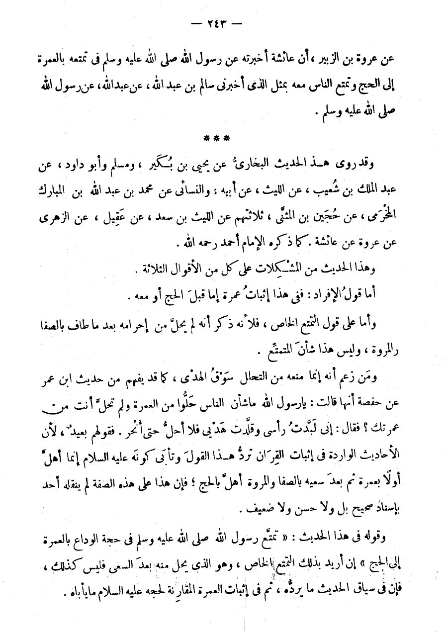 وَقَوْلُهُ فِي هَذَا الْحَدِيثِ: " تَمَتَّعَ رَسُولُ اللَّهِ صَلَّى اللَّهُ عَلَيْهِ وَسَلَّمَ فِي حَجَّةِ الْوَدَاعِ بِالْعُمْرَةِ إِلَى الْحَجِّ " إِنْ أُرِيدَ بِذَلِكَ التَّمَتُّعُ الْخَاصُّ، وَهُوَ الَّذِي يُحِلُّ مِنْهُ بَعْدَ السَّعْيِ فَلَيْسَ كَذَلِكَ، فَإِنَّ فِي سِيَاقِ الْحَدِيثِ مَا يَرُدُّهُ، ثُمَّ فِي إِثْبَات الْعمرَة الْمُقَارنَة لحجه عَلَيْهِ السَّلَام مَا يأباه.