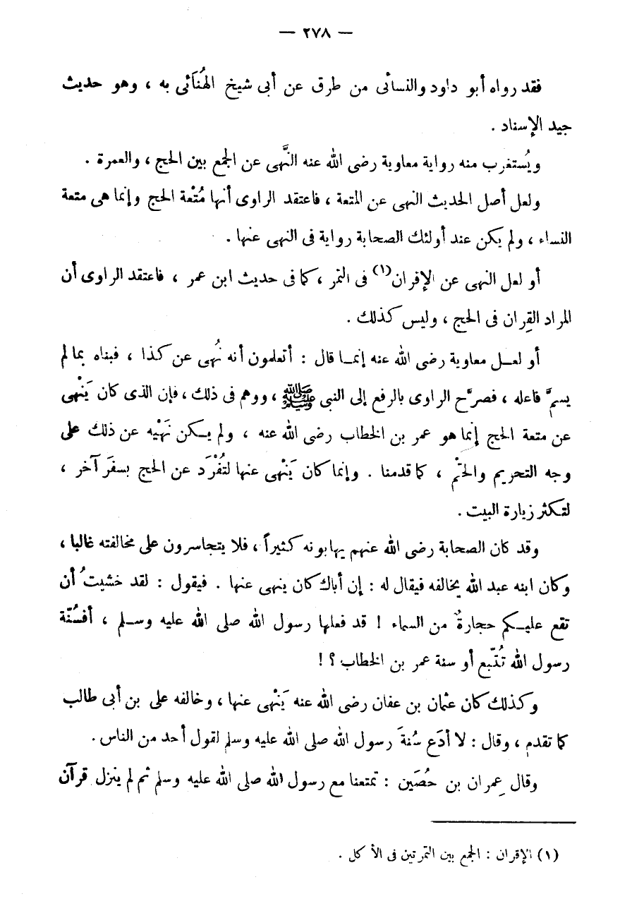 وَيُسْتَغْرَبُ مِنْهُ رِوَايَةُ مُعَاوِيَةَ رَضِيَ اللَّهُ عَنْهُ النَّهْيَ عَنِ الْجَمْعِ بَيْنَ الْحَجِّ، وَالْعُمْرَةِ.