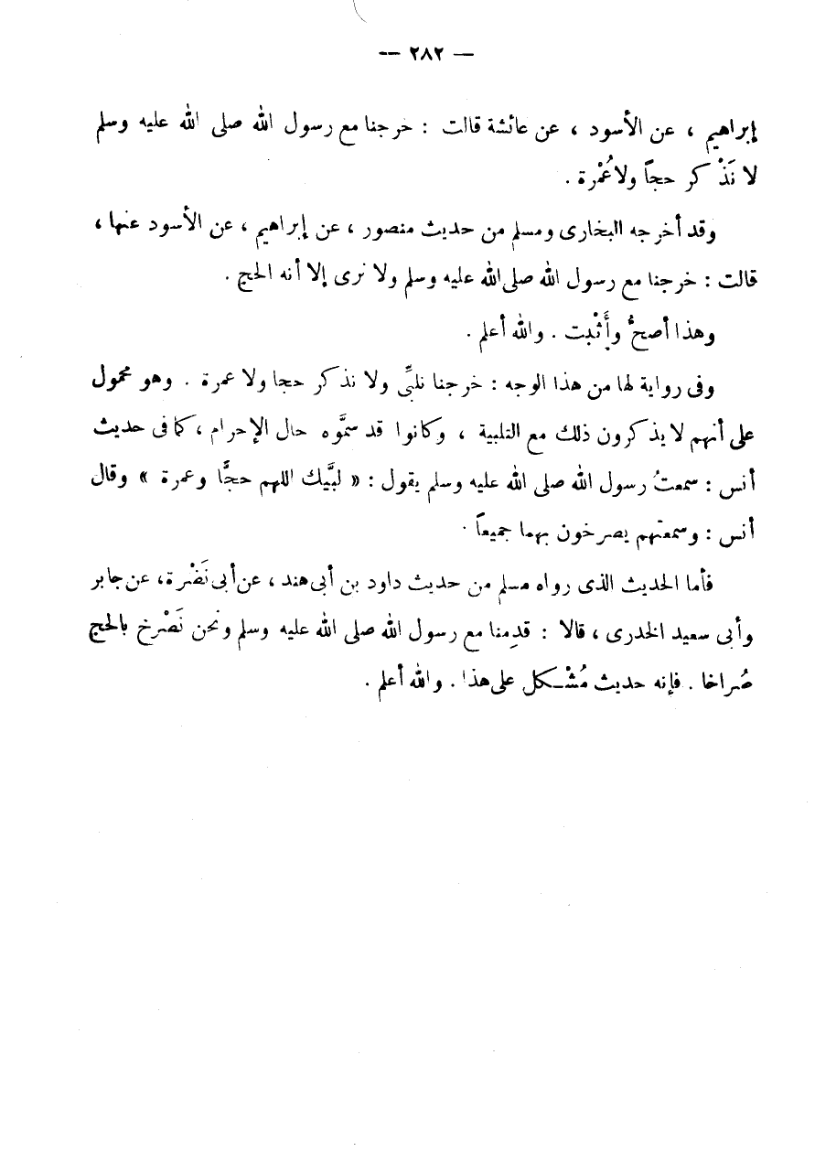 فَأَمَّا الْحَدِيثُ الَّذِي رَوَاهُ مُسْلِمٌ مِنْ حَدِيثِ دَاوُدَ بْنِ أَبِي هِنْدٍ، عَنْ أَبِي نَضْرَةَ، عَنْ جَابِرٍ وَأَبِي سَعِيدٍ الْخُدْرِيِّ، قَالَا: قَدِمْنَا مَعَ رَسُولِ اللَّهِ صَلَّى اللَّهُ عَلَيْهِ وَسَلَّمَ وَنَحْنُ نَصْرُخُ بِالْحَجِّ صُرَاخًا.