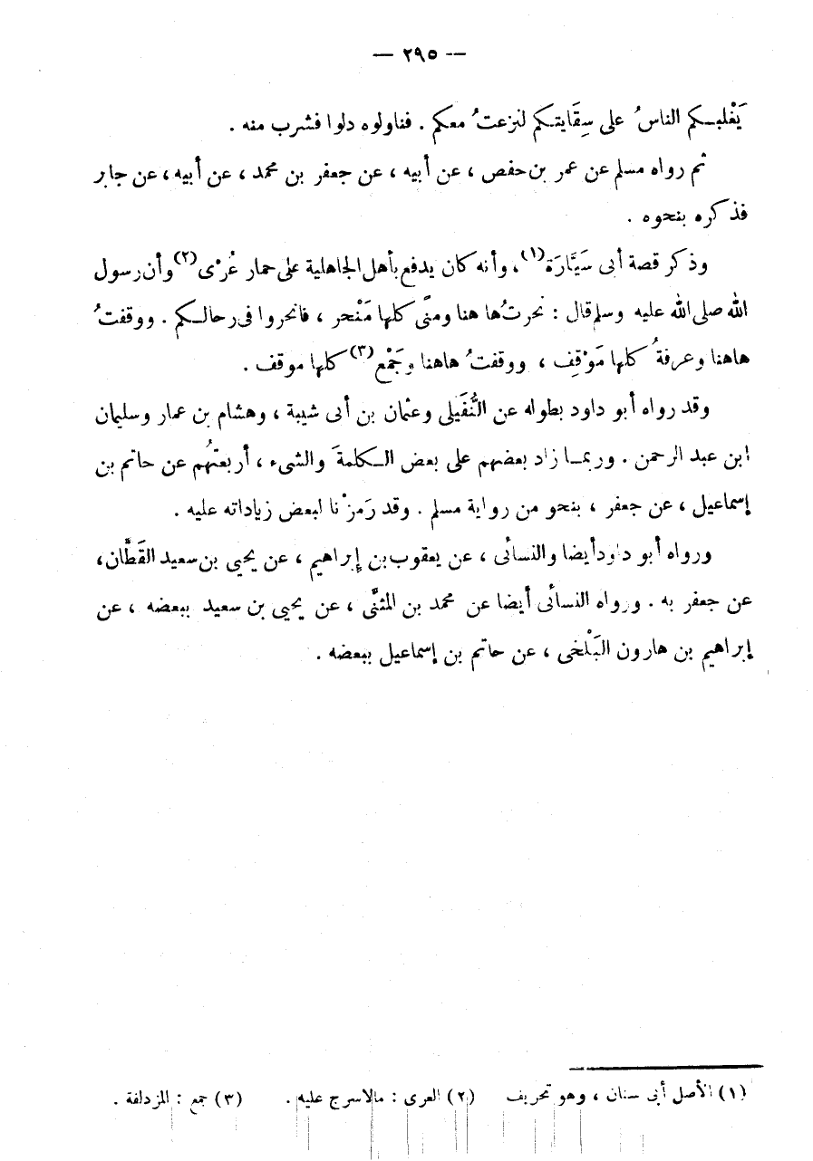 وَرُبَّمَا زَادَ بَعْضُهُمْ عَلَى بَعْضٍ الْكَلِمَة والشئ، أَرْبَعَتُهُمْ عَنْ حَاتِمِ بْنِ إِسْمَاعِيلَ، عَنْ جَعْفَرٍ، بِنَحْوٍ مِنْ رِوَايَةِ مُسْلِمٍ.