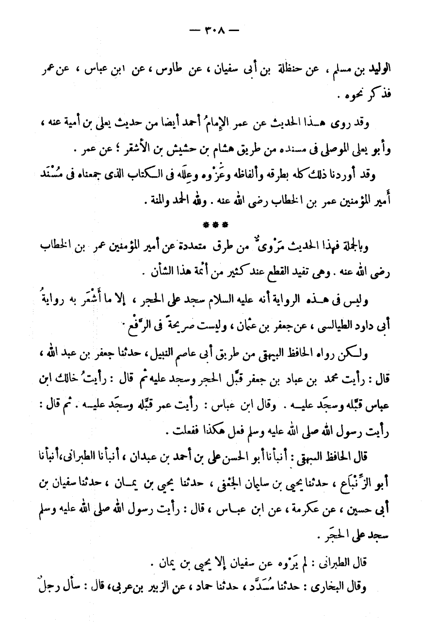 وَلَكِنْ رَوَاهُ الْحَافِظُ الْبَيْهَقِيُّ مِنْ طَرِيقِ أَبِي عَاصِمٍ النَّبِيلِ، حَدثنَا جَعْفَرُ بْنُ عَبْدِ اللَّهِ، قَالَ: رَأَيْتُ مُحَمَّدَ بْنَ عَبَّادِ بْنِ جَعْفَرٍ قَبَّلَ الْحَجَرَ وَسَجَدَ عَلَيْهِ ثُمَّ قَالَ: رَأَيْتُ خَالَكَ ابْنَ عَبَّاسٍ قَبَّلَهُ وَسَجَدَ عَلَيْهِ.